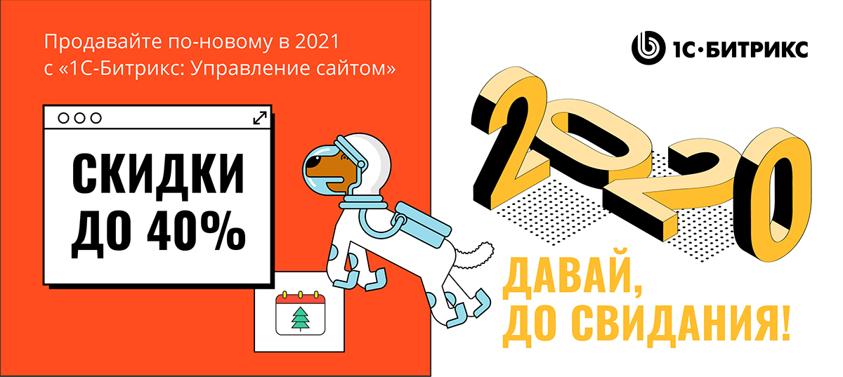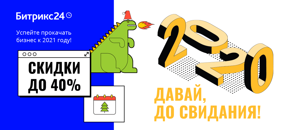 Мы готовы открыть новый год с новыми возможностями для бизнеса. Поэтому запускаем акцию «2020 – давай, до свидания!»: скидки 10%, 20%, 30% и 40% на продукты Битрикс24 и «1С-Битрикс: Управление сайтом».