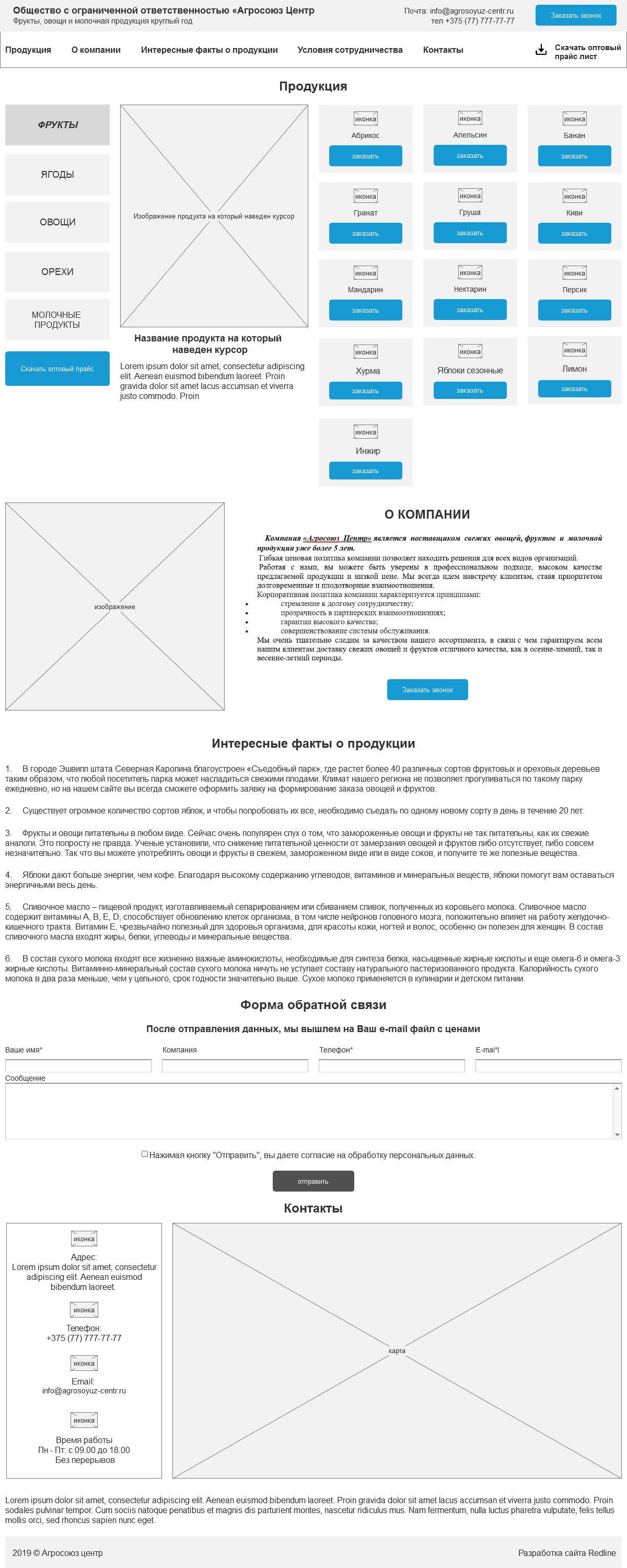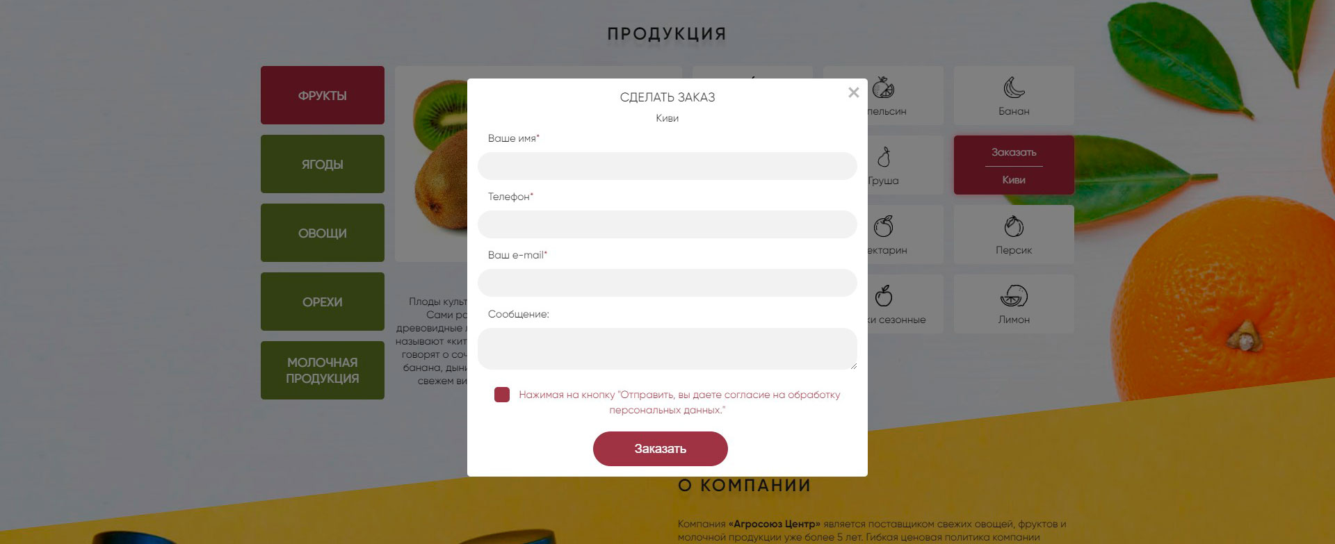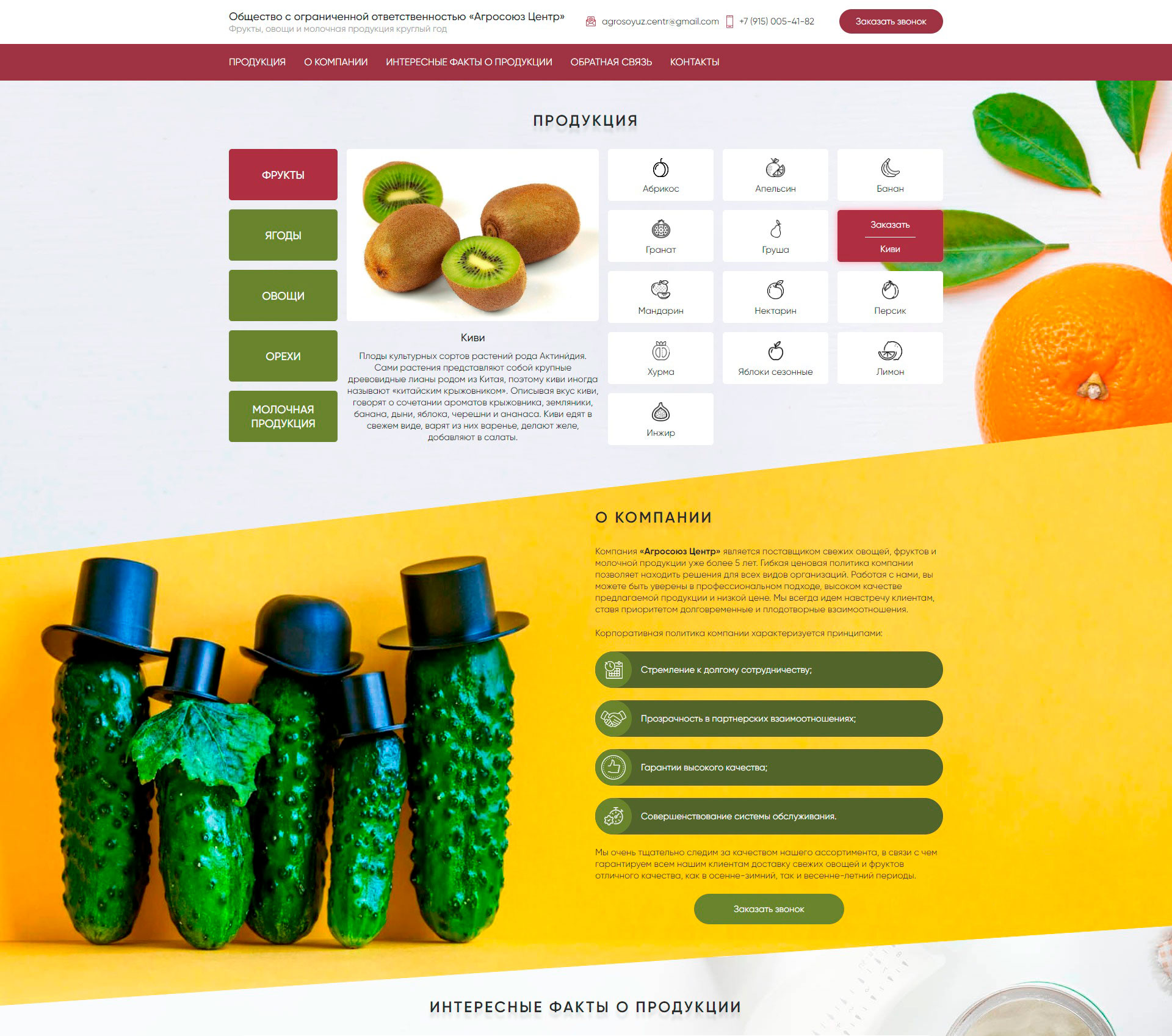 Задача: Разработать лендинг для поставщика свежих овощей, фруктов и молочной продукции ООО "Агросоюз Центр"