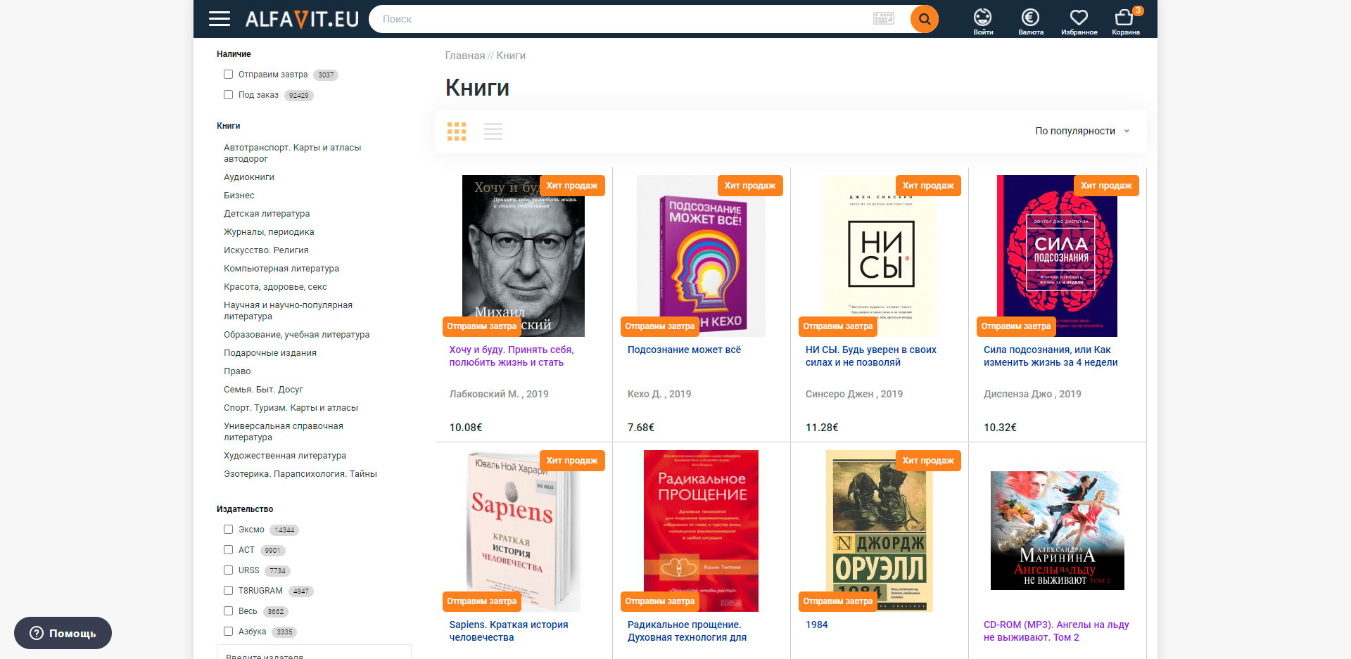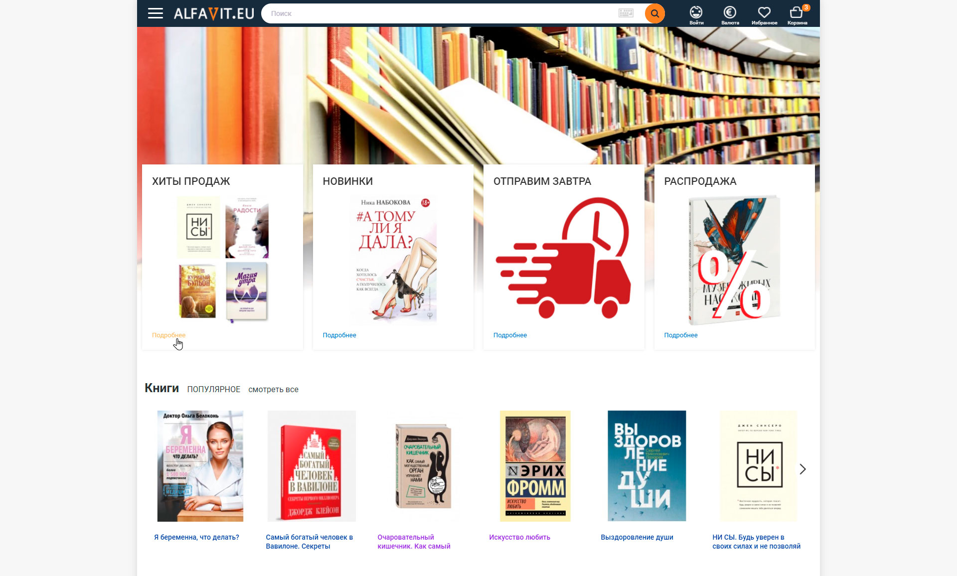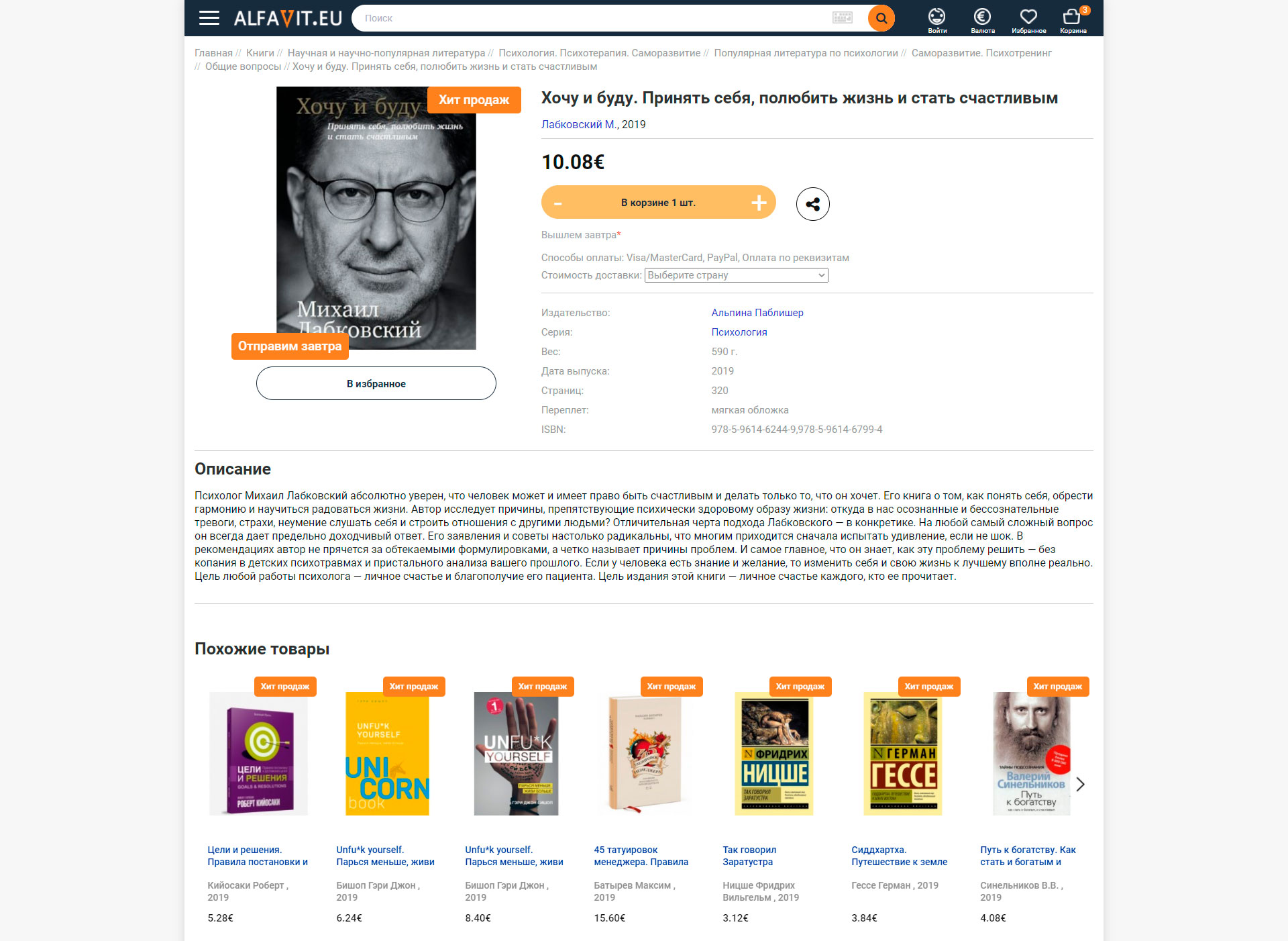 Задача: Разработать интернет-магазин для продажи книг, раскрасок и настольных игр на русском языке в Европе.