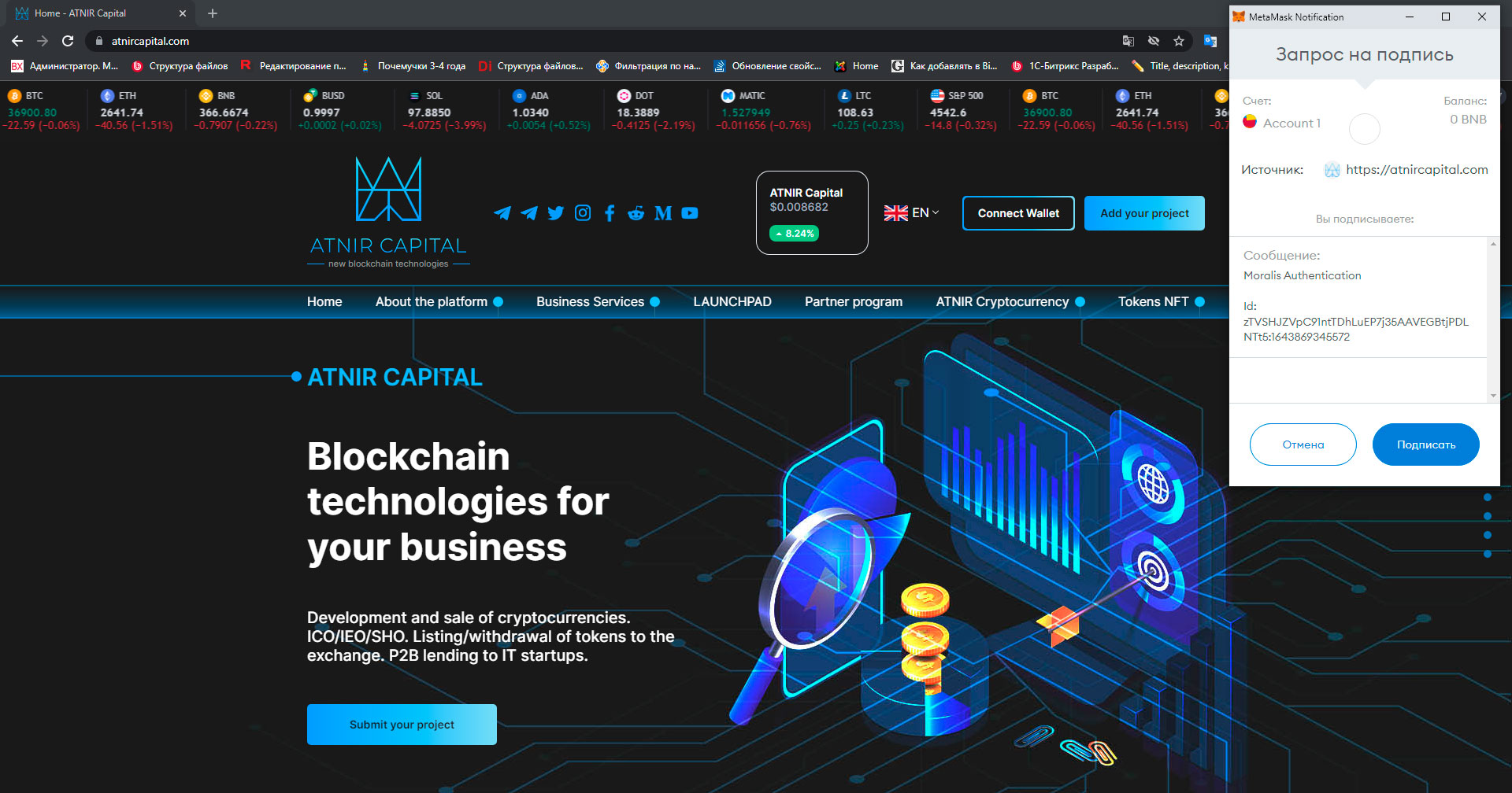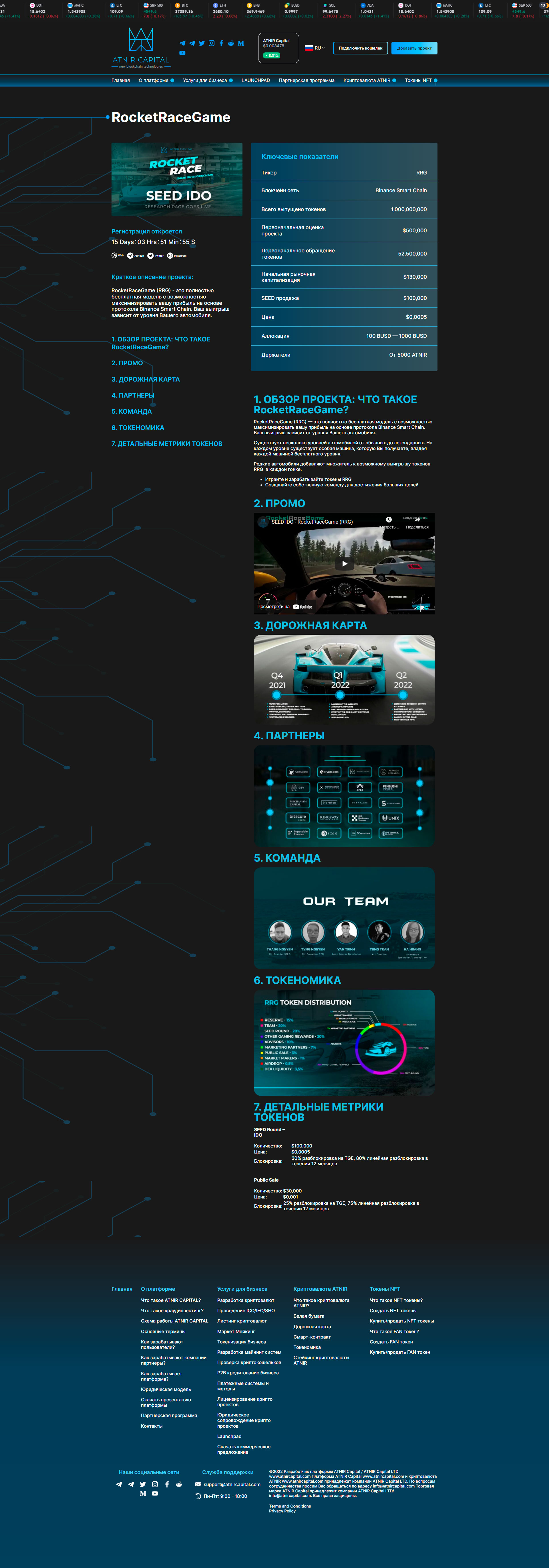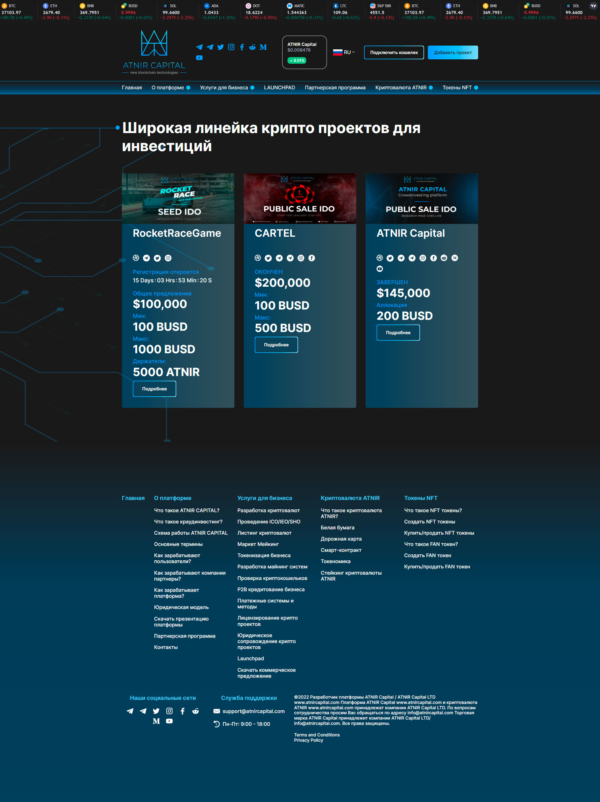 Все внутренние страницы объединены общим дизайном. На странице LAUNCHPAD пользователь может ознакомиться с проектами для инвестиций.