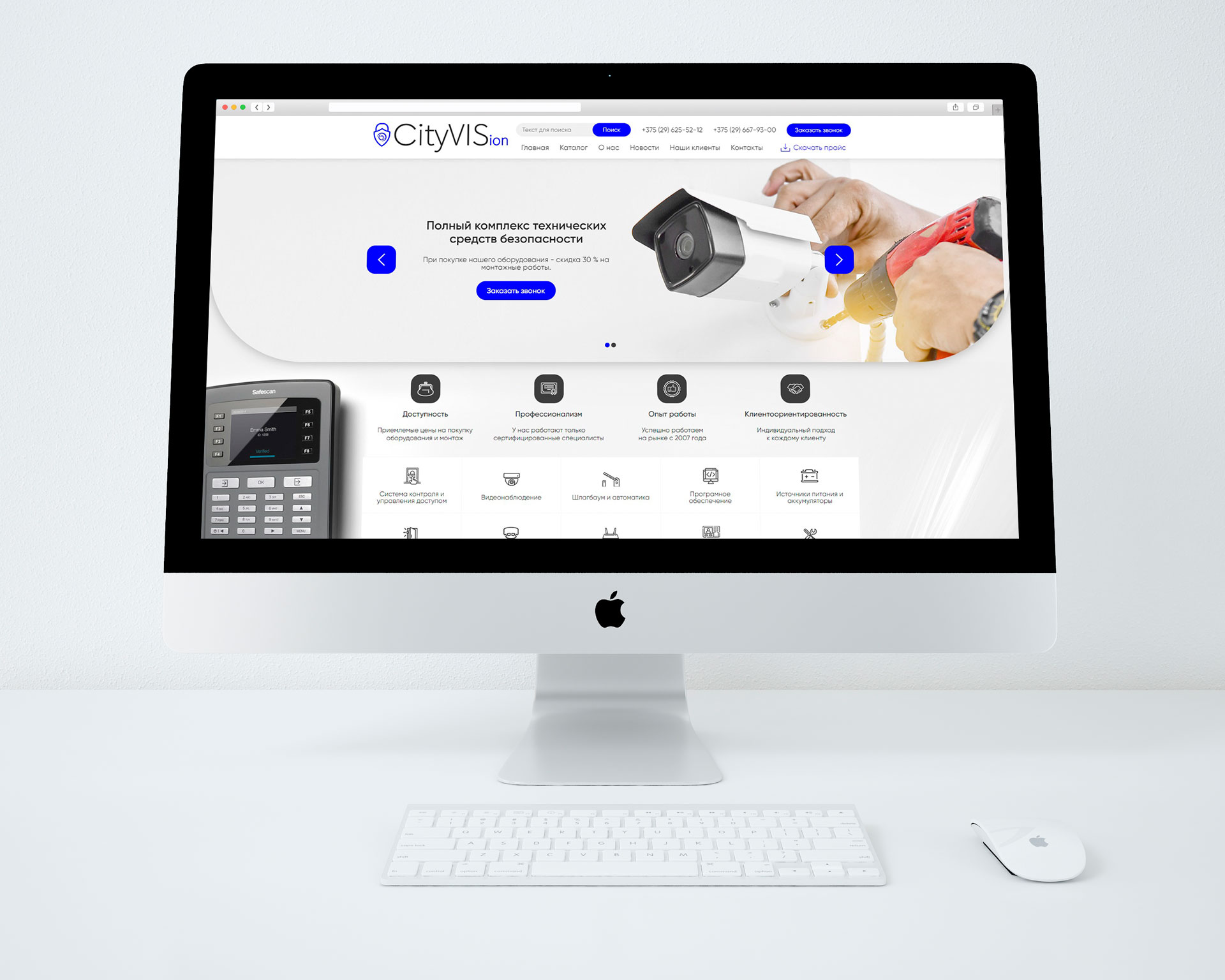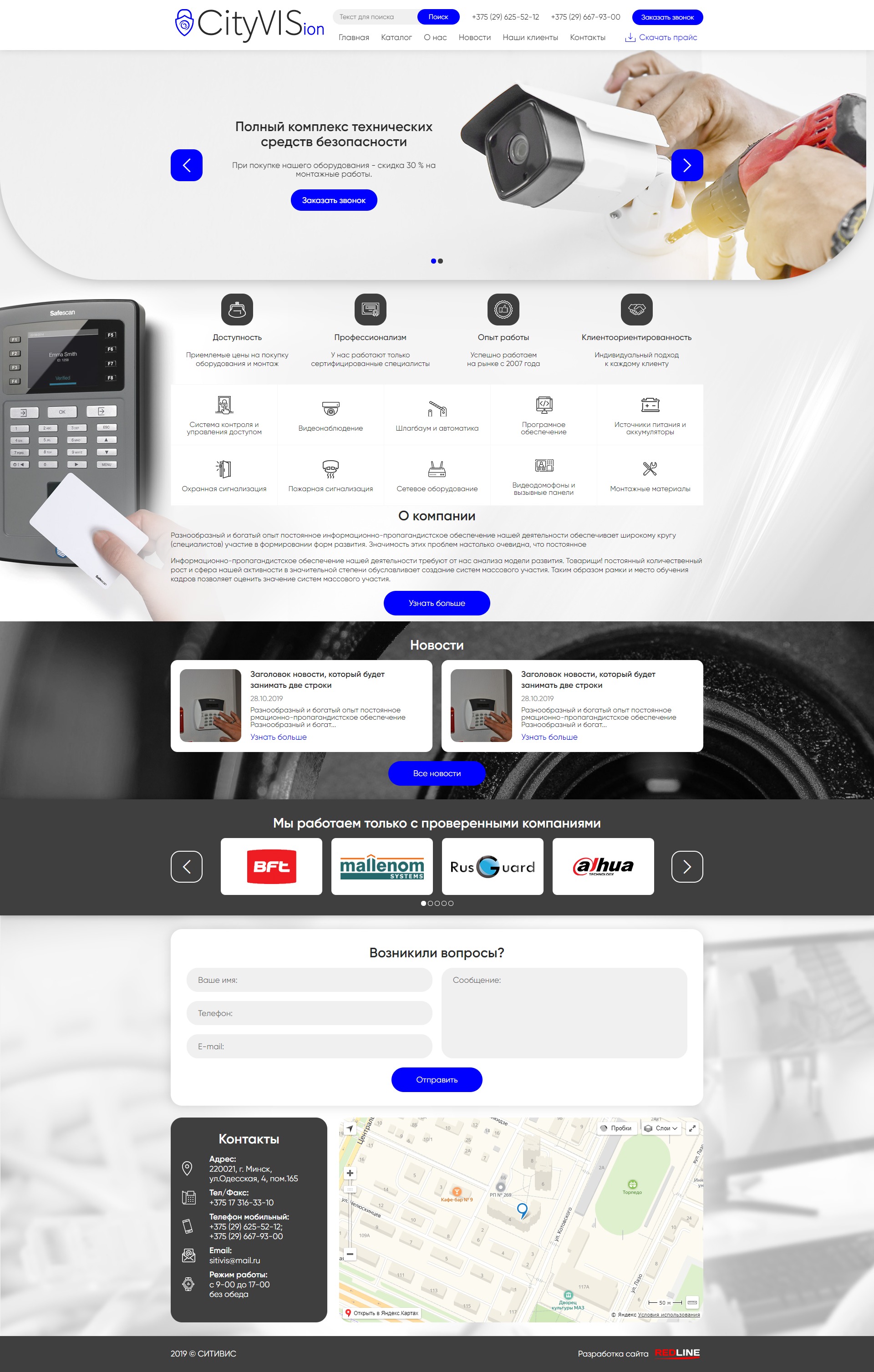 Задача: Разработать логотип и корпоративный сайт с каталогом продукции компании, которая реализует технические средства безопасности: камеры видеонаблюдения, видео-домофоны, сигнализации и сопутствующую продукцию.