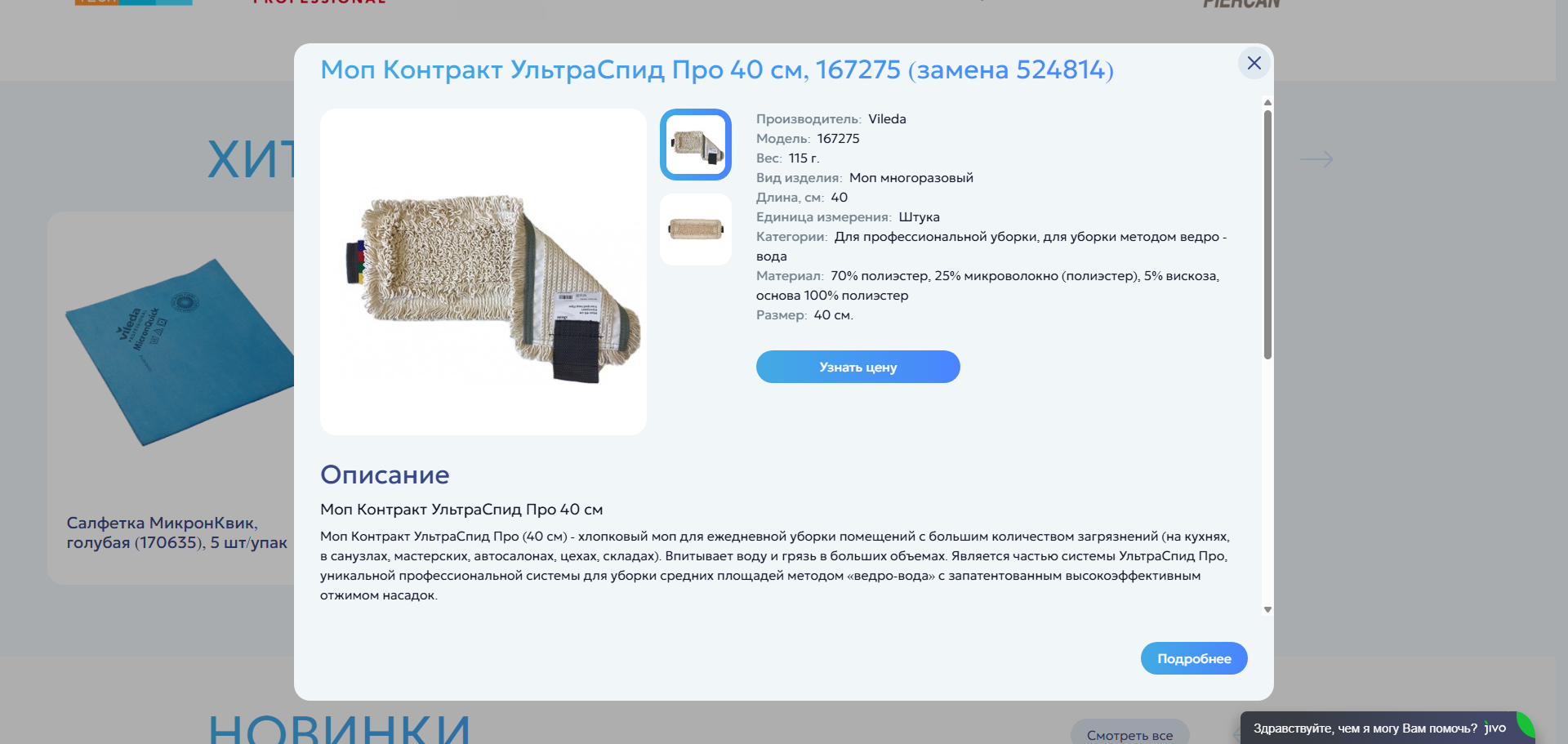 На страницах категорий каталога расположены списки товаров, которые можно сортировать, изменять вид отображения товаров, фильтровать по параметрам. При клике по кнопке "Быстрый просмотр" открывается модальное окно с информацией о товаре.