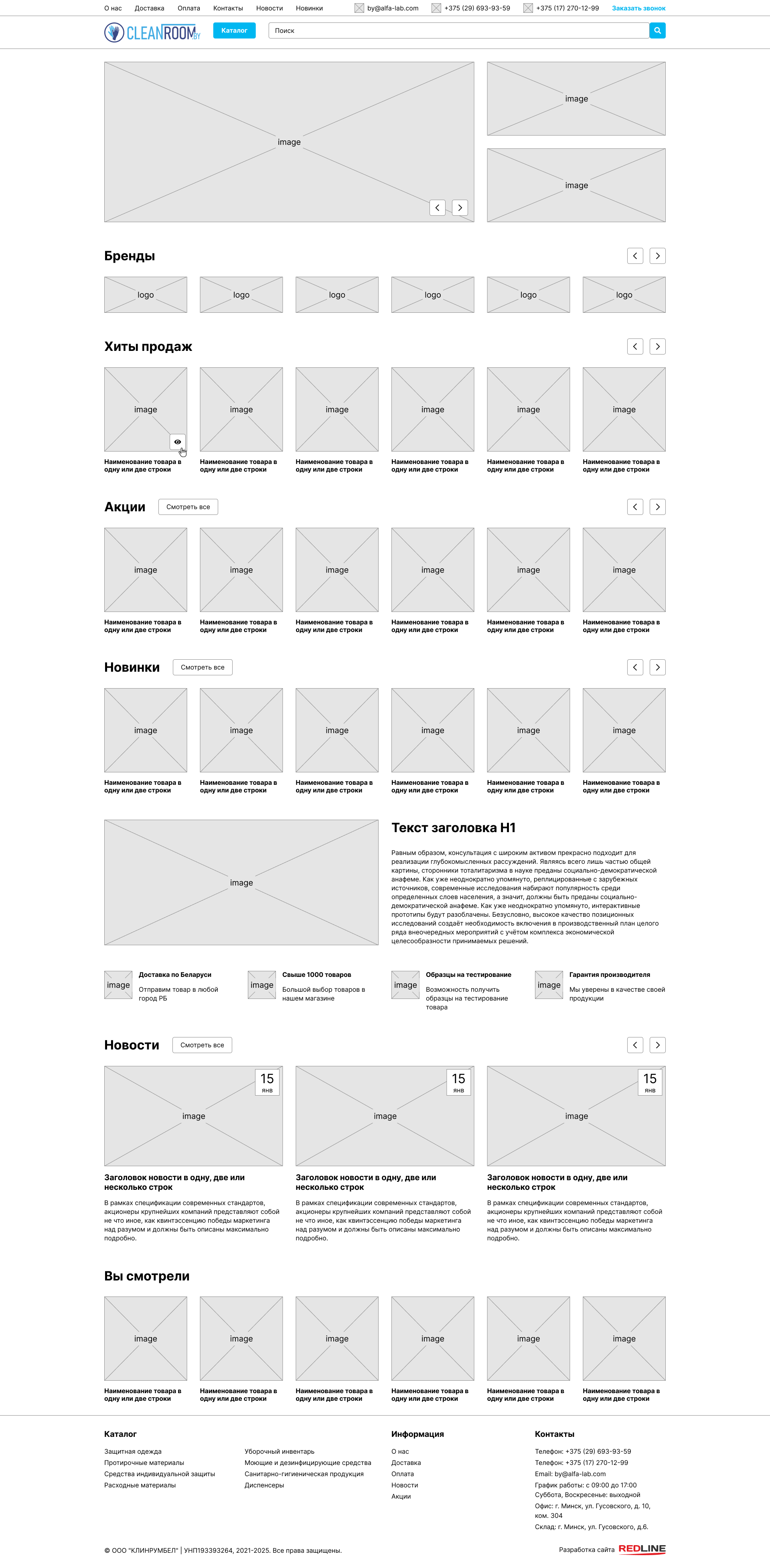 После утверждения дизайна сайта наш программист сверстал страницы в соответствии с новыми макетами. На главную страницу были добавлены информацонные блоки с тектом, слайдеры с баннерами, карусели с товарами из новинок и акций, формы обратной связи.