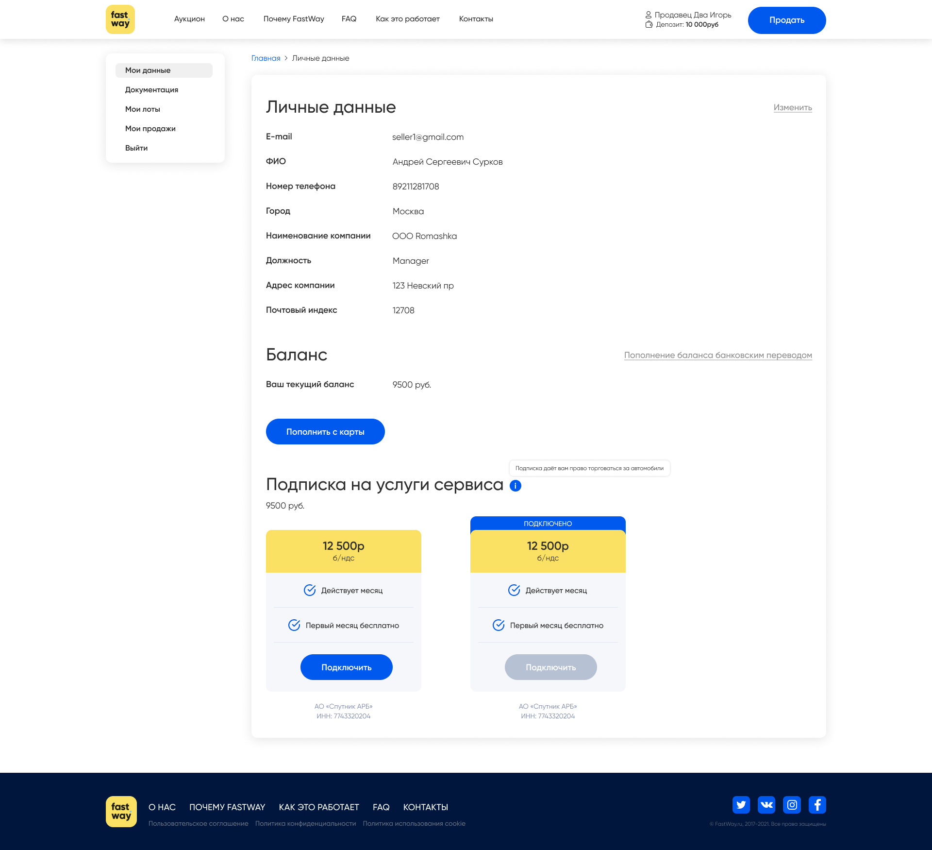 Для основных страниц личных кабинетов покупателей и продавцов также был разработан дизайн. В личном кабинете пользователь может быстро перемещаться по основным разделам при помощи бокового меню.