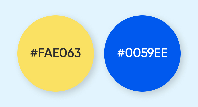Основные цвета: жёлтый (из логотипа) и синий (подобран для сочетания с жёлтым).
