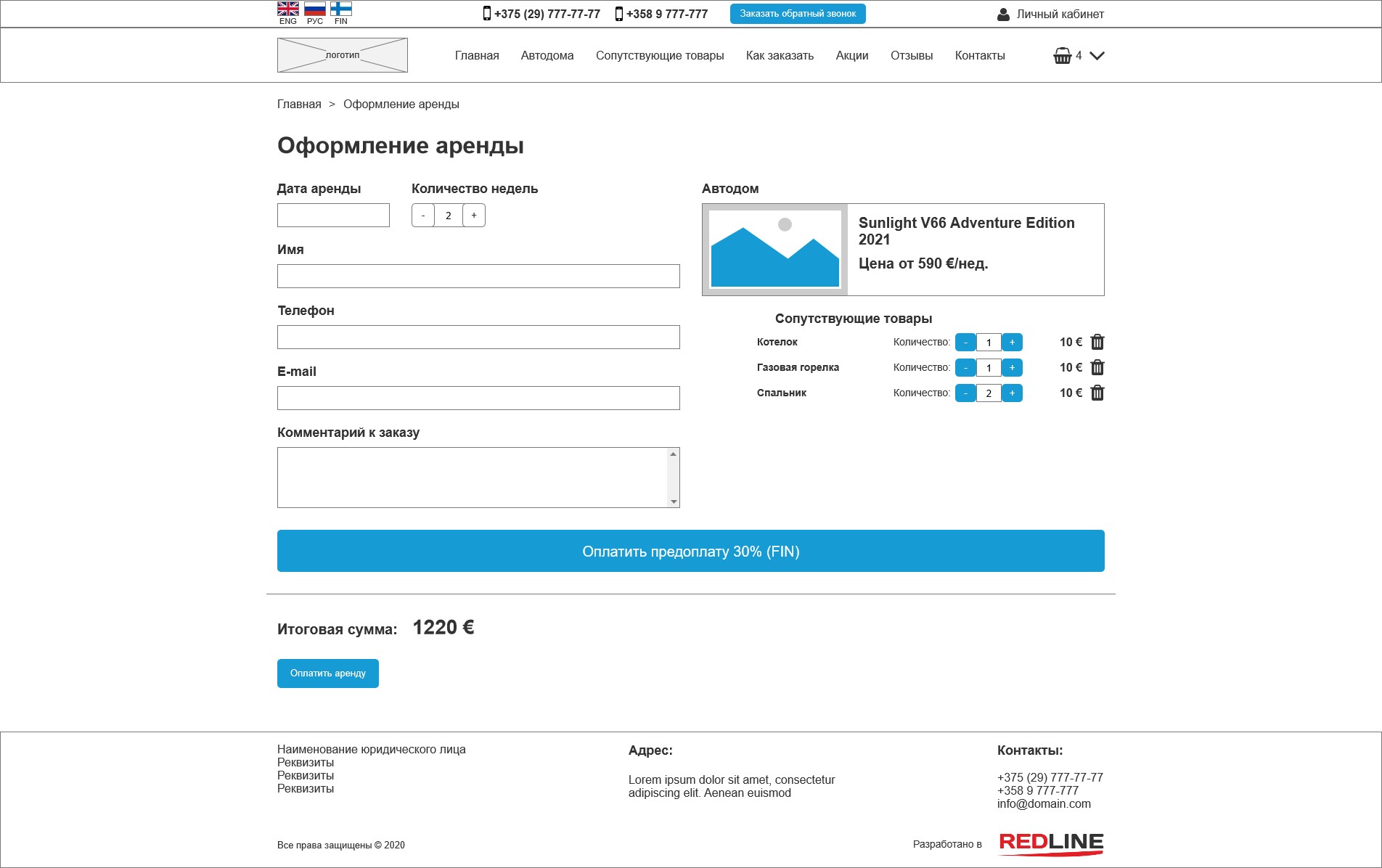 Задача: разработать интернет-магазин на трёх языках для аренды автодомов в Финляндии.