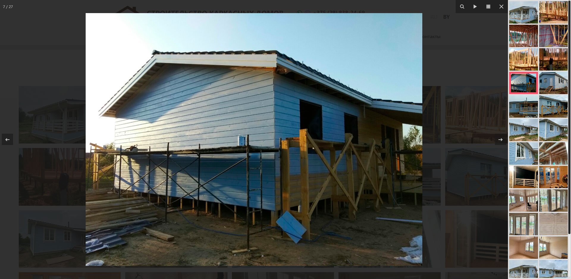 На сайте есть фотогалерея готовых домов с процессом постройки и итоговыми результатами. В галерее представлены работы не только по индивидуальным проектам, но и по проектам из каталога. На страницах таких проектов в каталоге есть ссылка для перехода к просмотру работы в галерее. Каждая работа в галерее представлена отдельным фотоальбомом, каждый на своей странице.