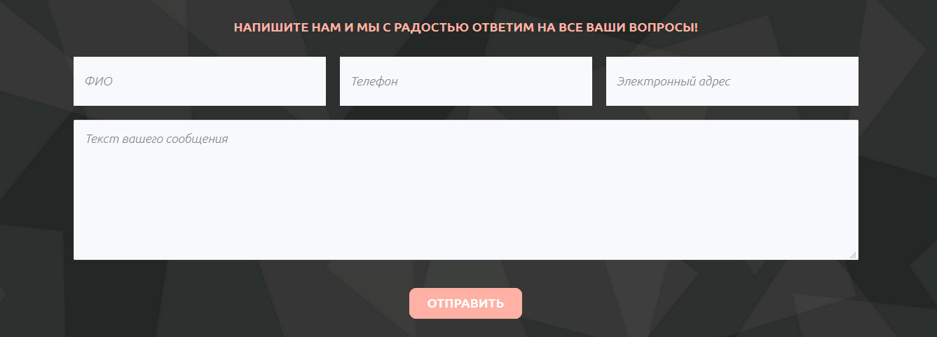 Почти на каждой странице есть форма обратной связи, чтобы посетители в любой момент могли задать интересующие их вопросы.