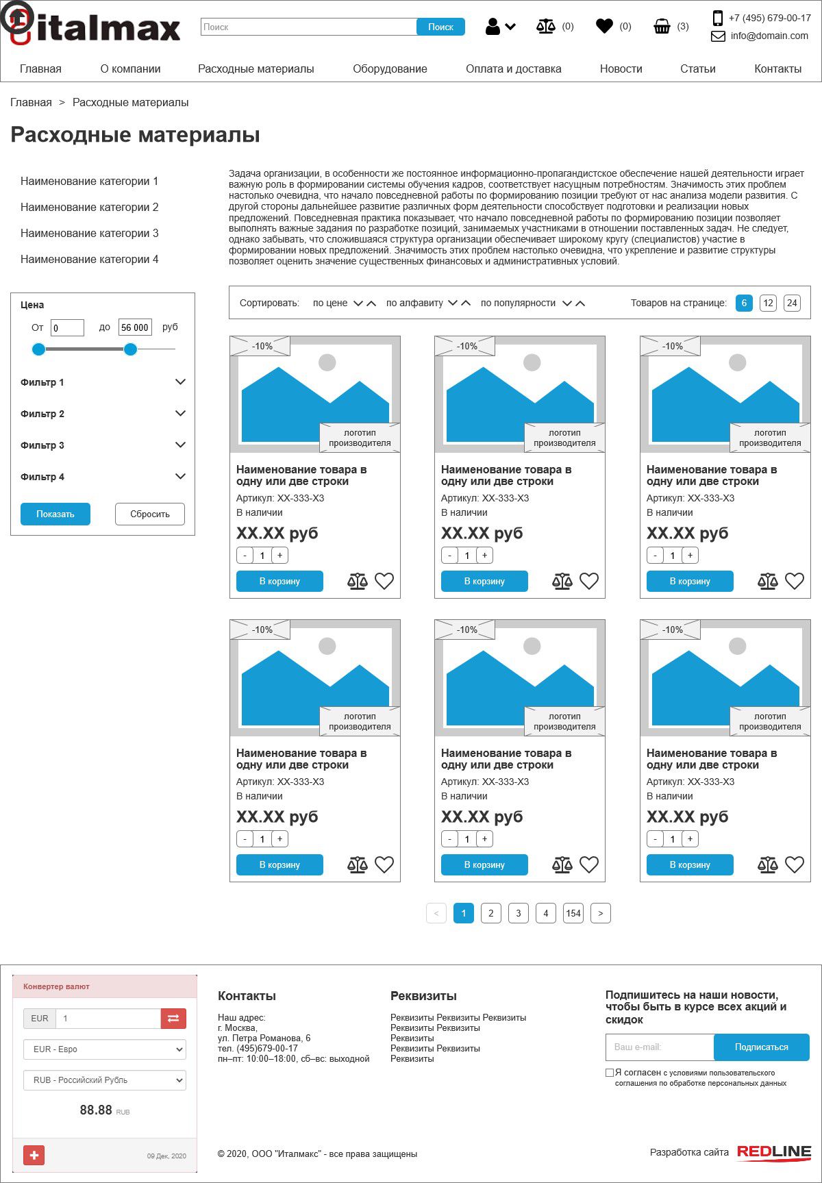 Для сайта было разработано два отдельных каталога: для оборудования, для расходных материалов.