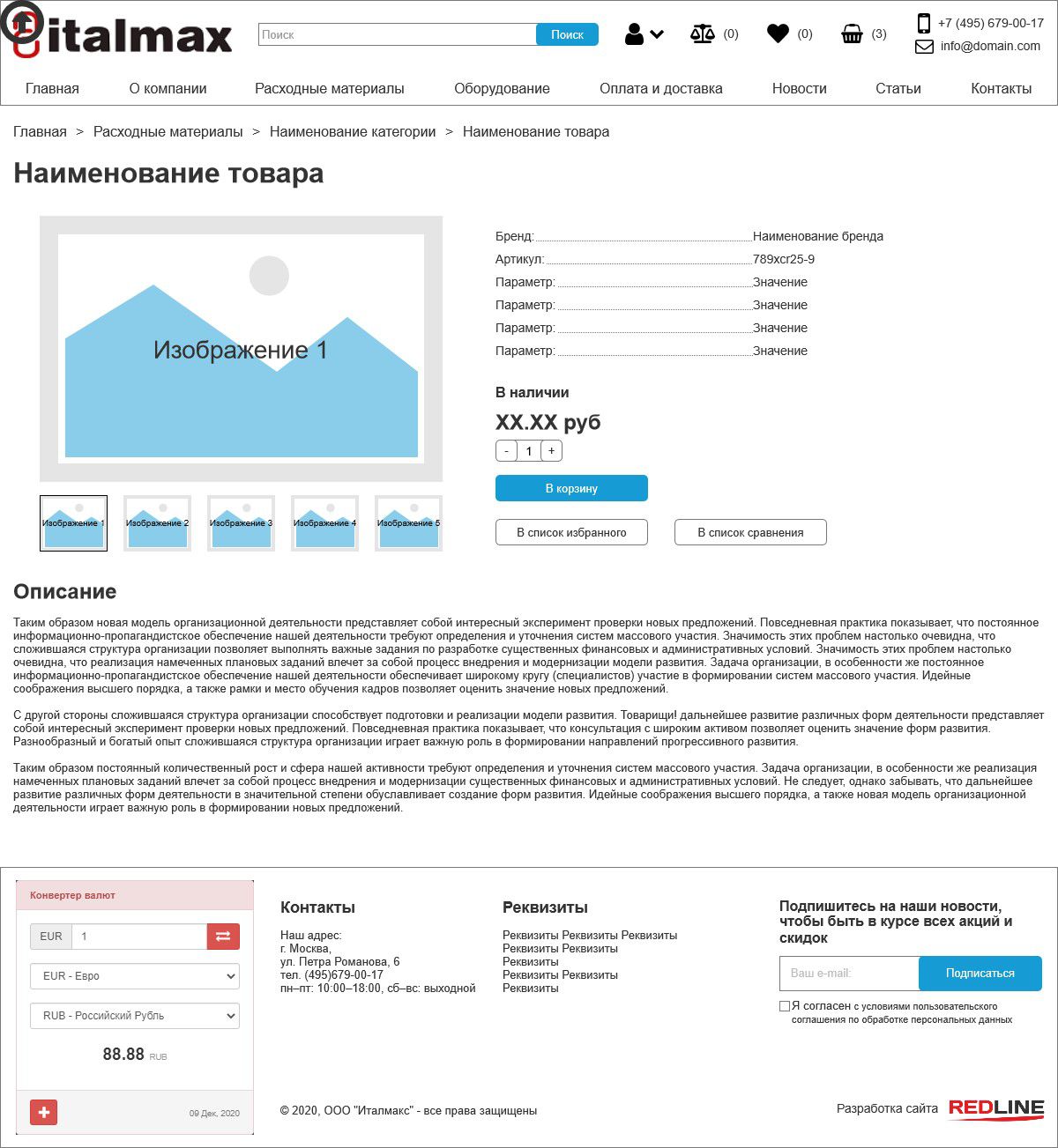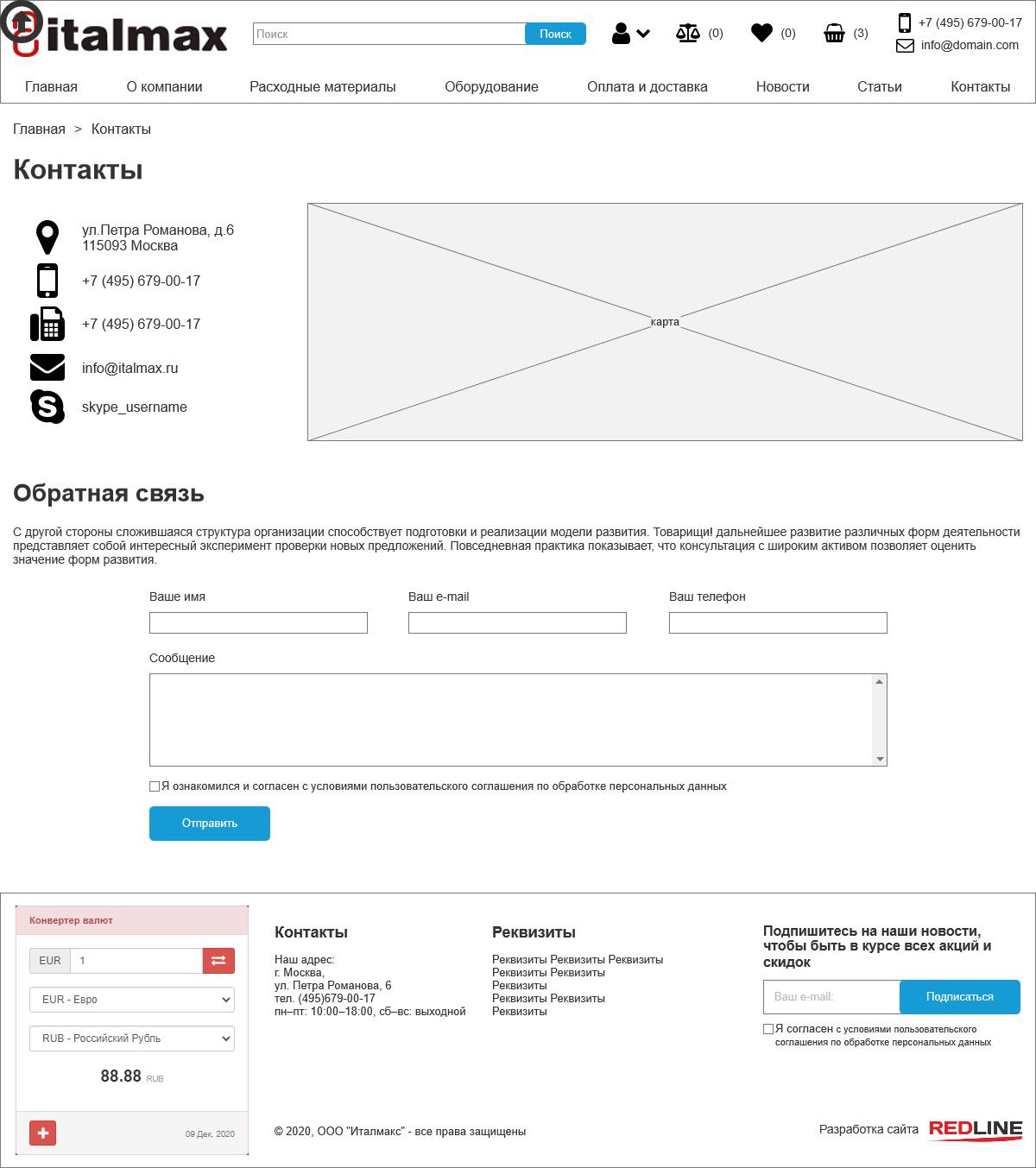 Решение: первым этапом в создании любого сайта является прототипирование будущих страниц. Прототипы представляют собой схематичное расположение ключевых блоков и элементов в них. Для интернет-магазина Italmax были отрисованы прототипы следующих страниц: