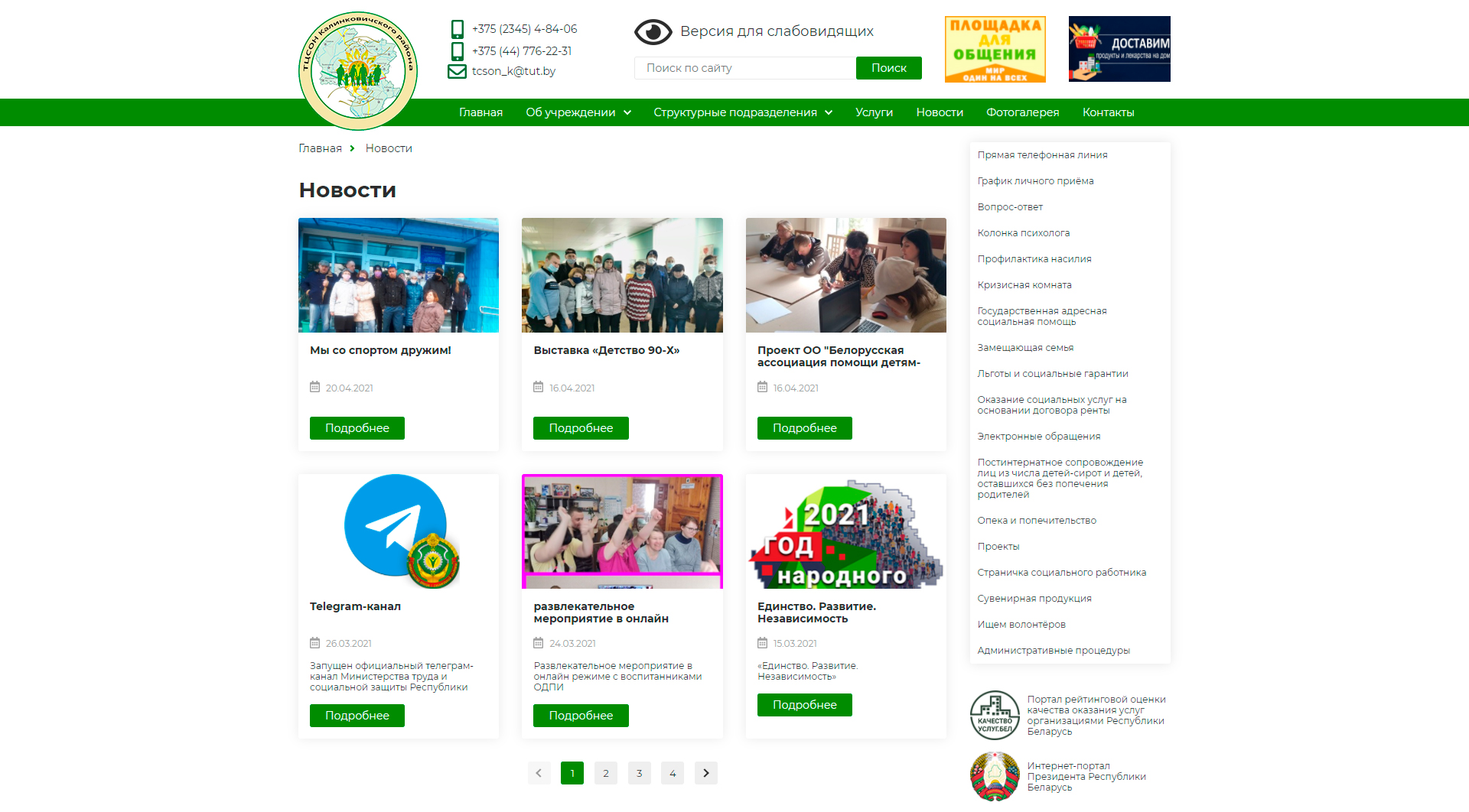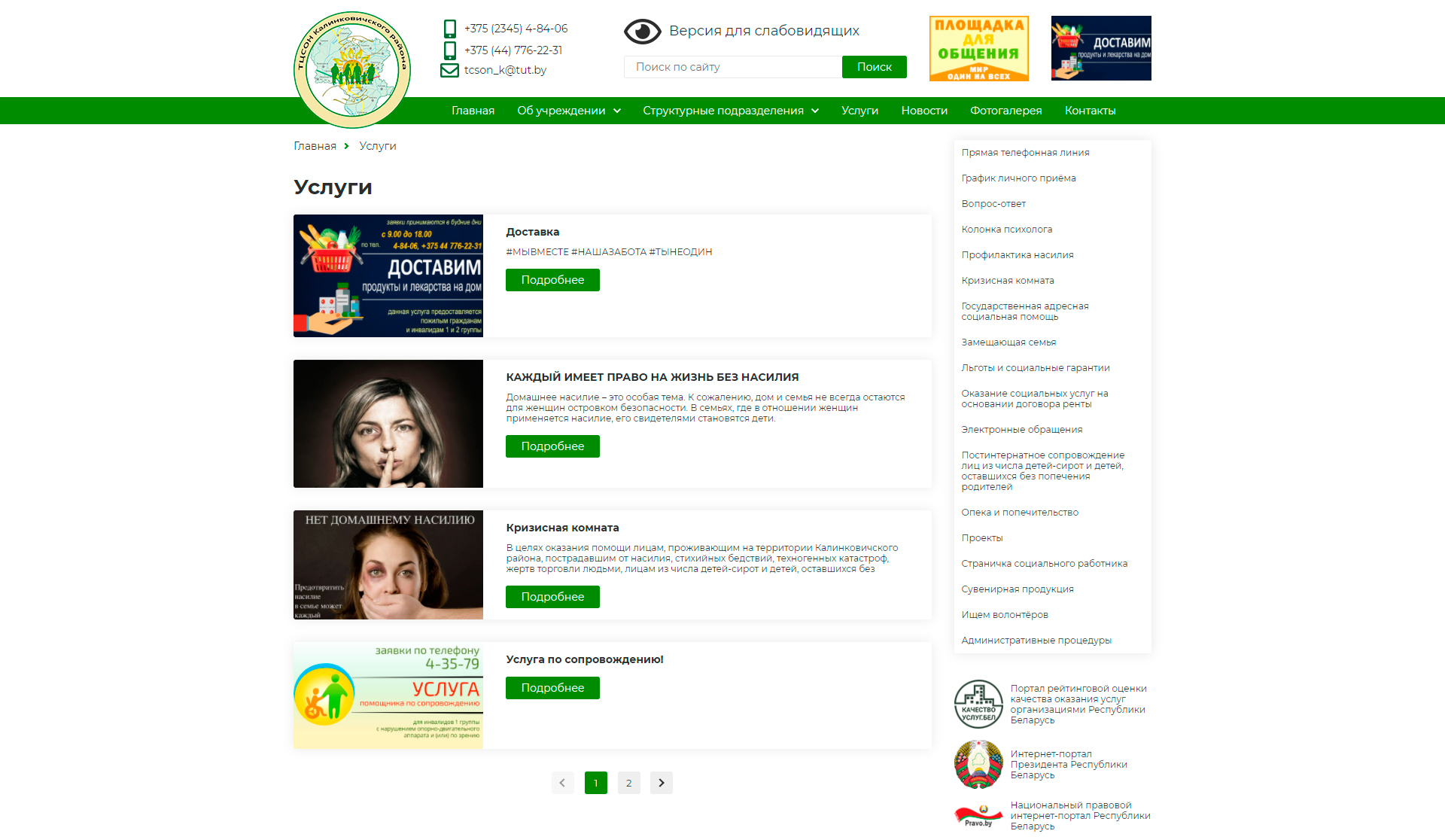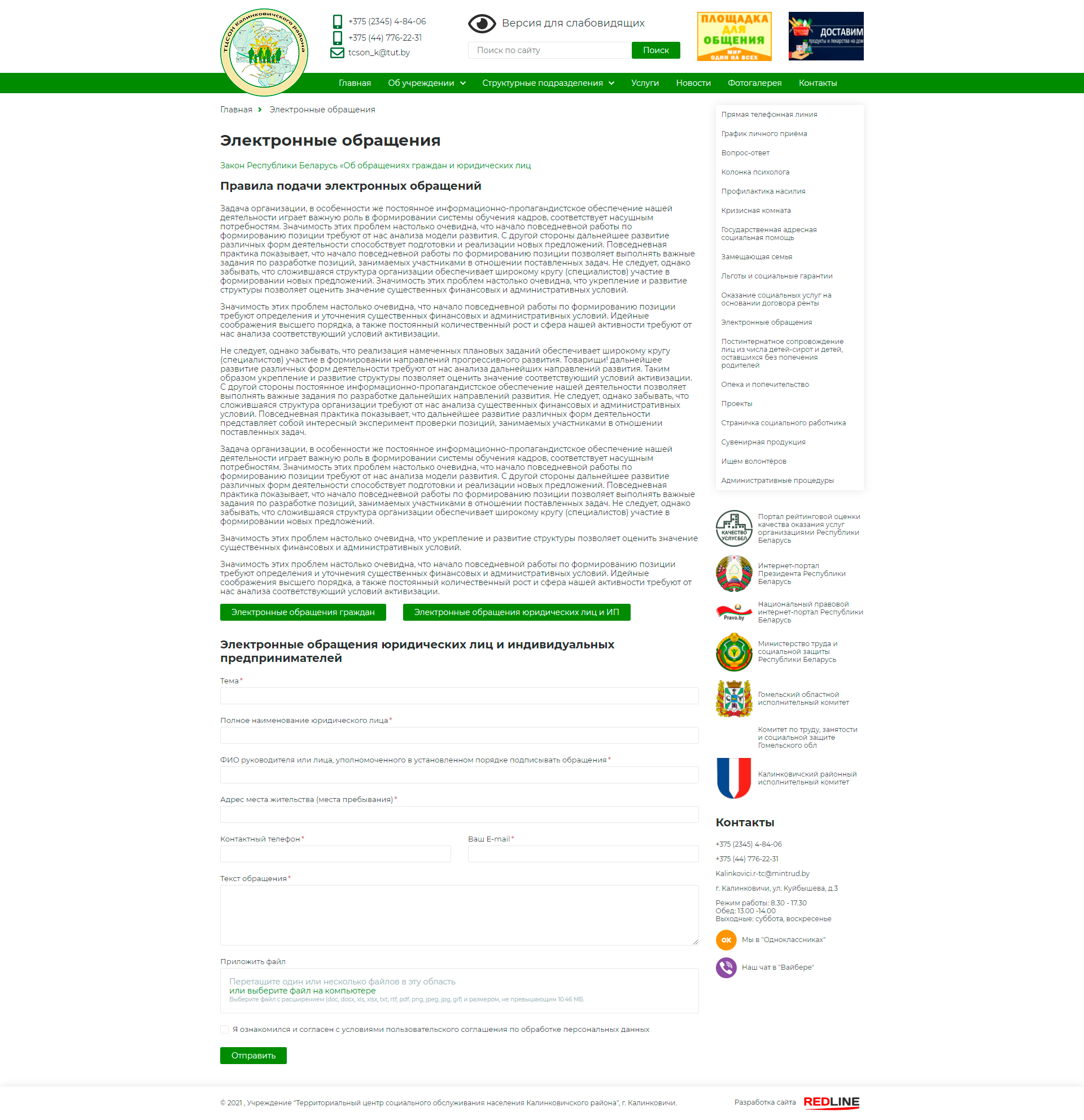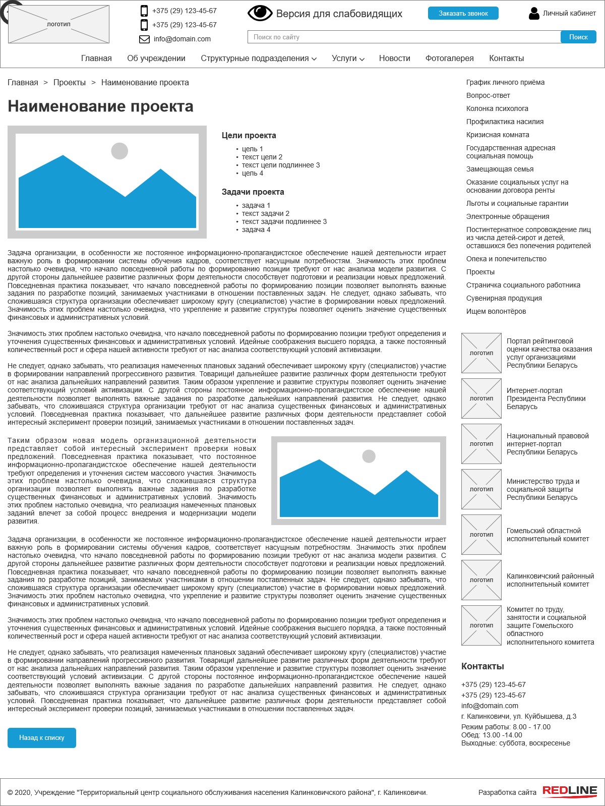 Задача: разработать сайт учреждения «Территориальный центр социального обслуживания населения Калинковичского района».