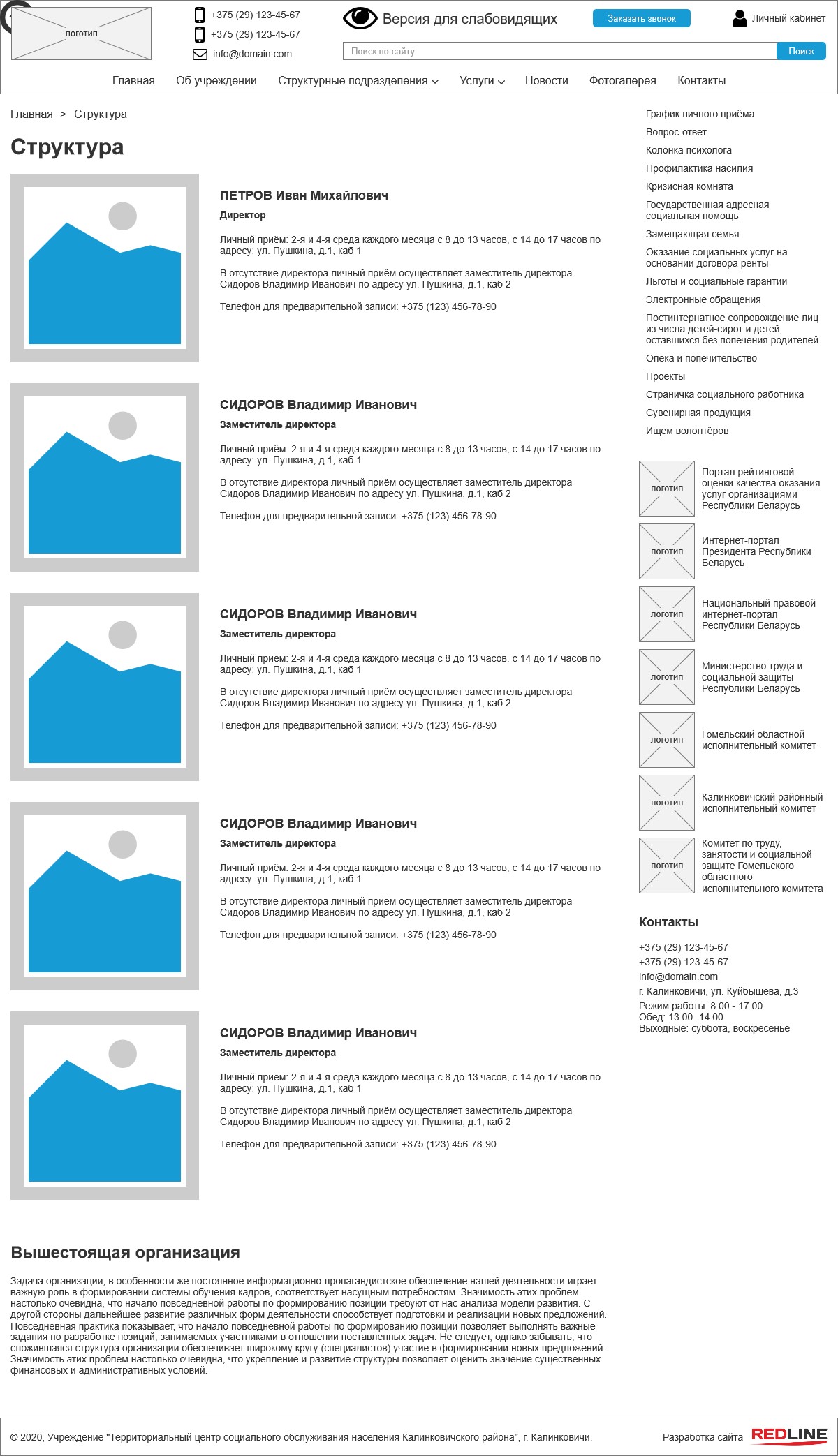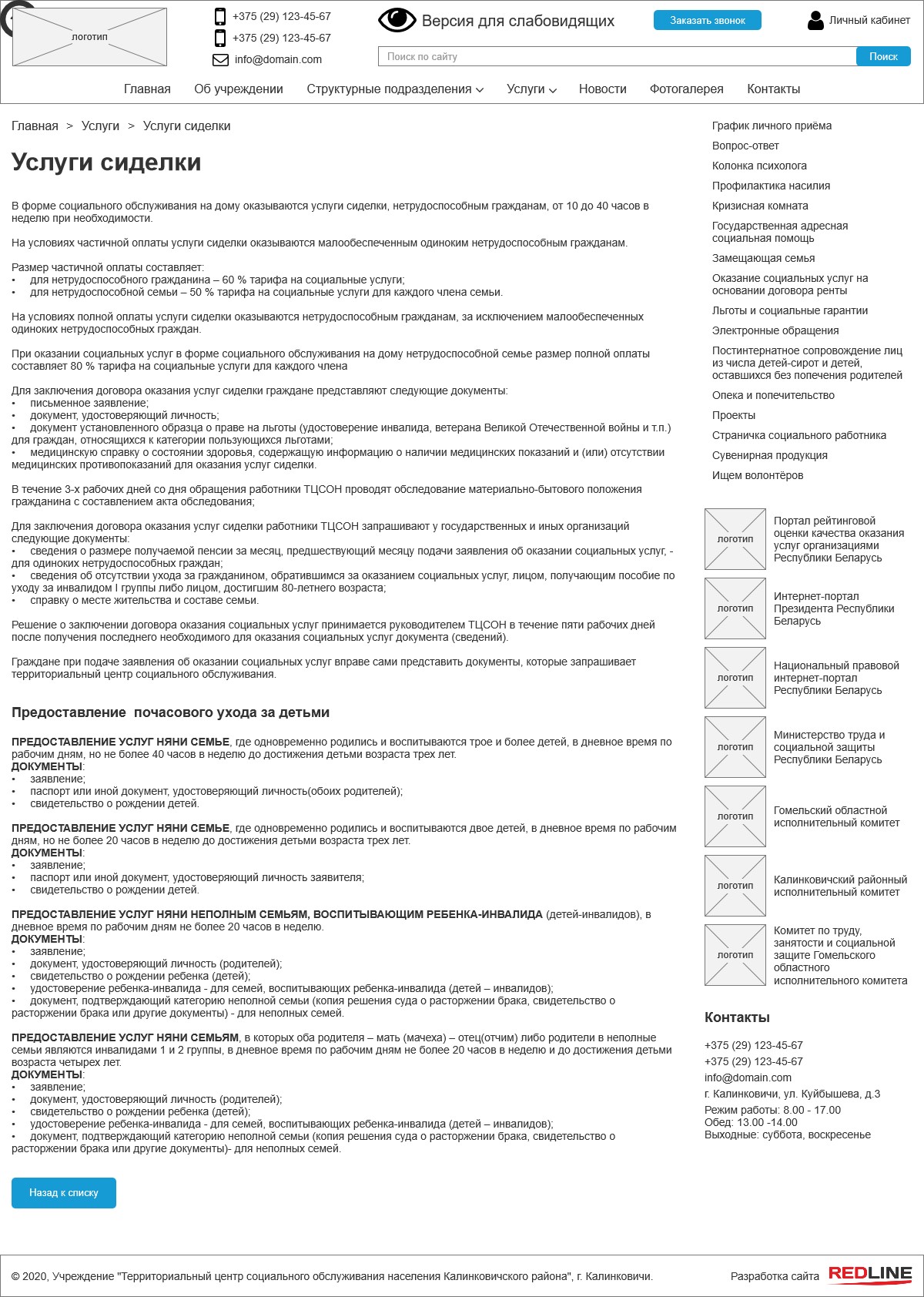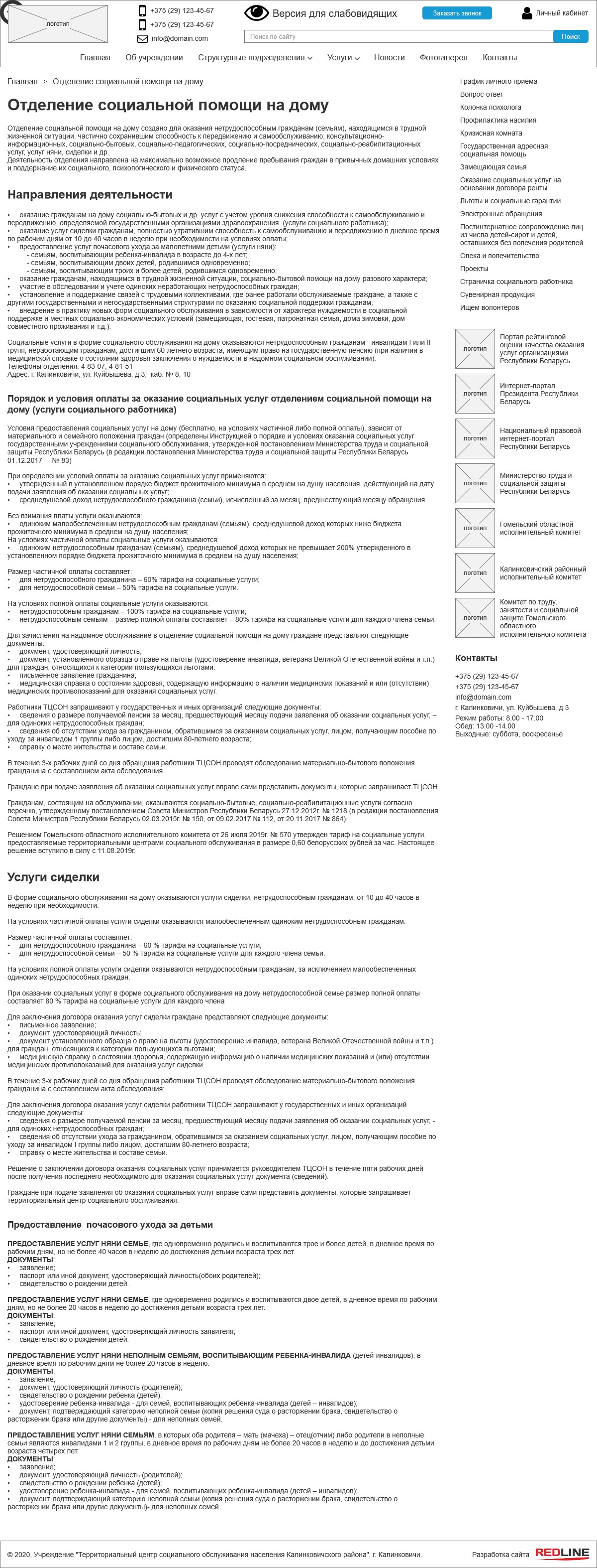 Задача: разработать сайт учреждения «Территориальный центр социального обслуживания населения Калинковичского района».