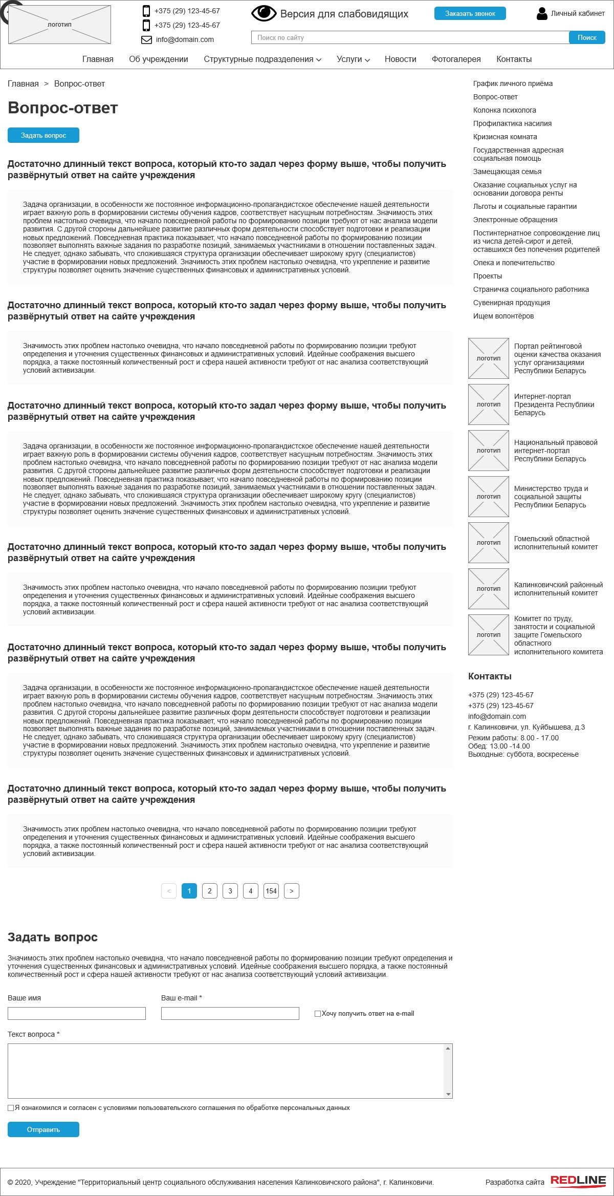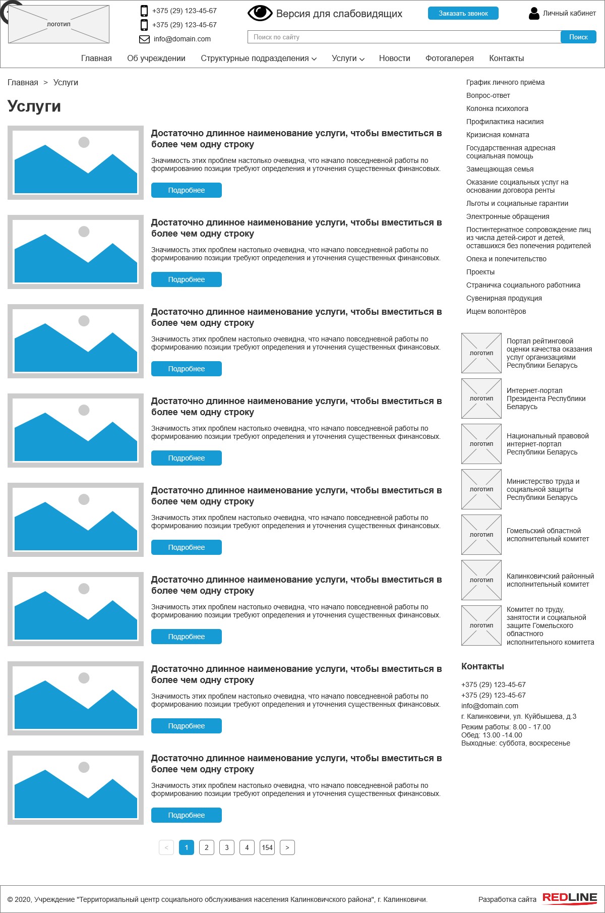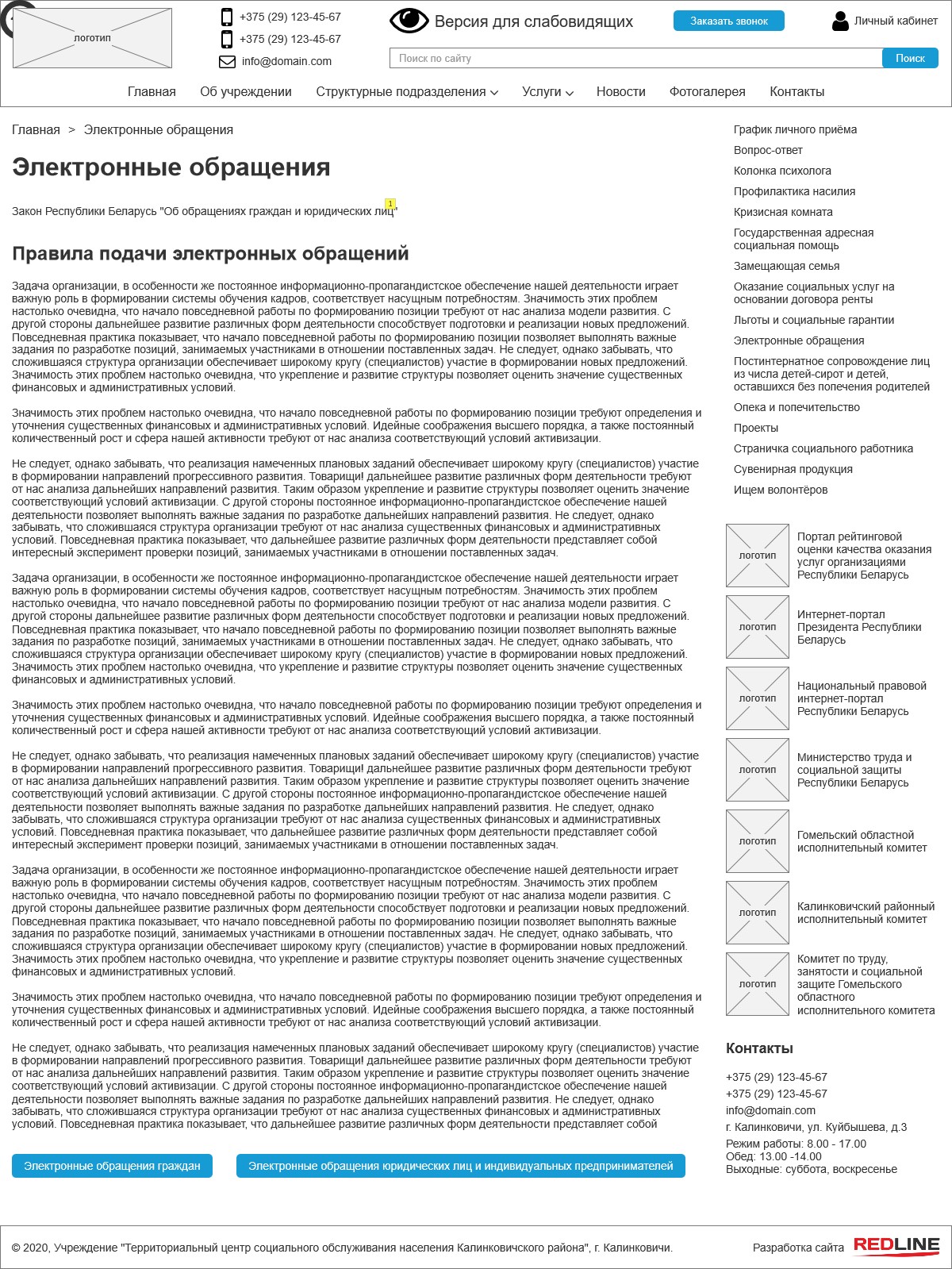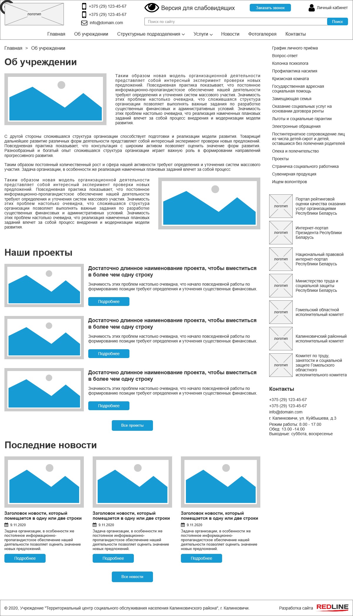 Задача: разработать сайт учреждения «Территориальный центр социального обслуживания населения Калинковичского района».