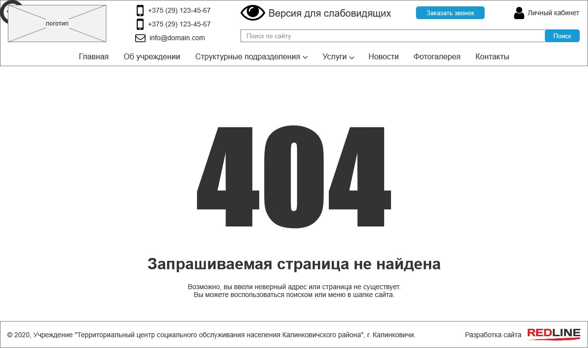 Оформление страницы с ошибкой 404 является не только хорошим тоном в Интернете, но и даёт пользователю возможность сразу перейти на любую другую страницу сайта. Страница ошибки оформлена таким образом, чтобы не выбиваться из общего дизайна сайта, на ней выведены шапка и подвал как на любой другой странице сайта.