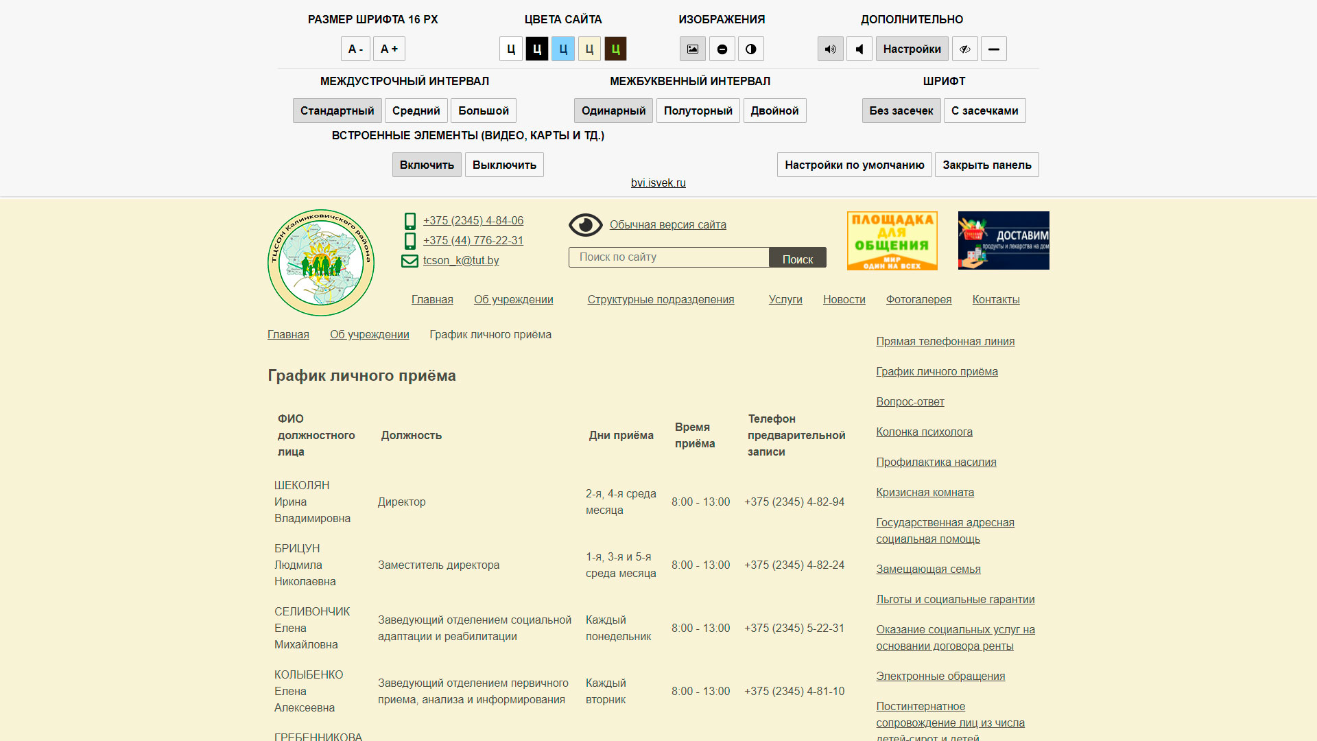 На сайте есть возможность включить версию для слабовидящих с гибкими настройками отображения текста и картинок.