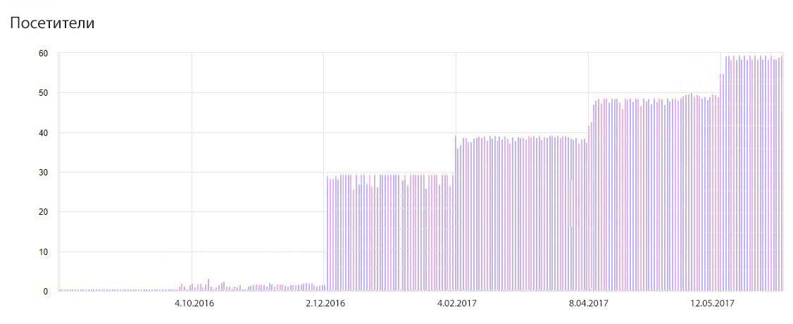 Propilates.by занял заслуженные позиции в ТОПе популярных поисковых систем и начал приводить клиентов в фитнес зал нашего заказчика. В октябре сайт посещали один – два человека в сутки, а к Новому году посещаемость выросла до 30 пользователей ежедневно, это связано с сезонностью бизнеса. Популярность тренеров по фитнесу растет весной. Наш клиент оказался готов к сезону массового похудения и поэтому в мае 2017 года количество посетителей на сайте в сутки составило 60-70 человек, а это 5-7 заявок.