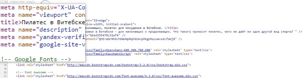 Основываясь на собранном семантическом ядре, мы выделили и заполнили на сайте все мета-теги. Основными тегами для поисковых систем являются: