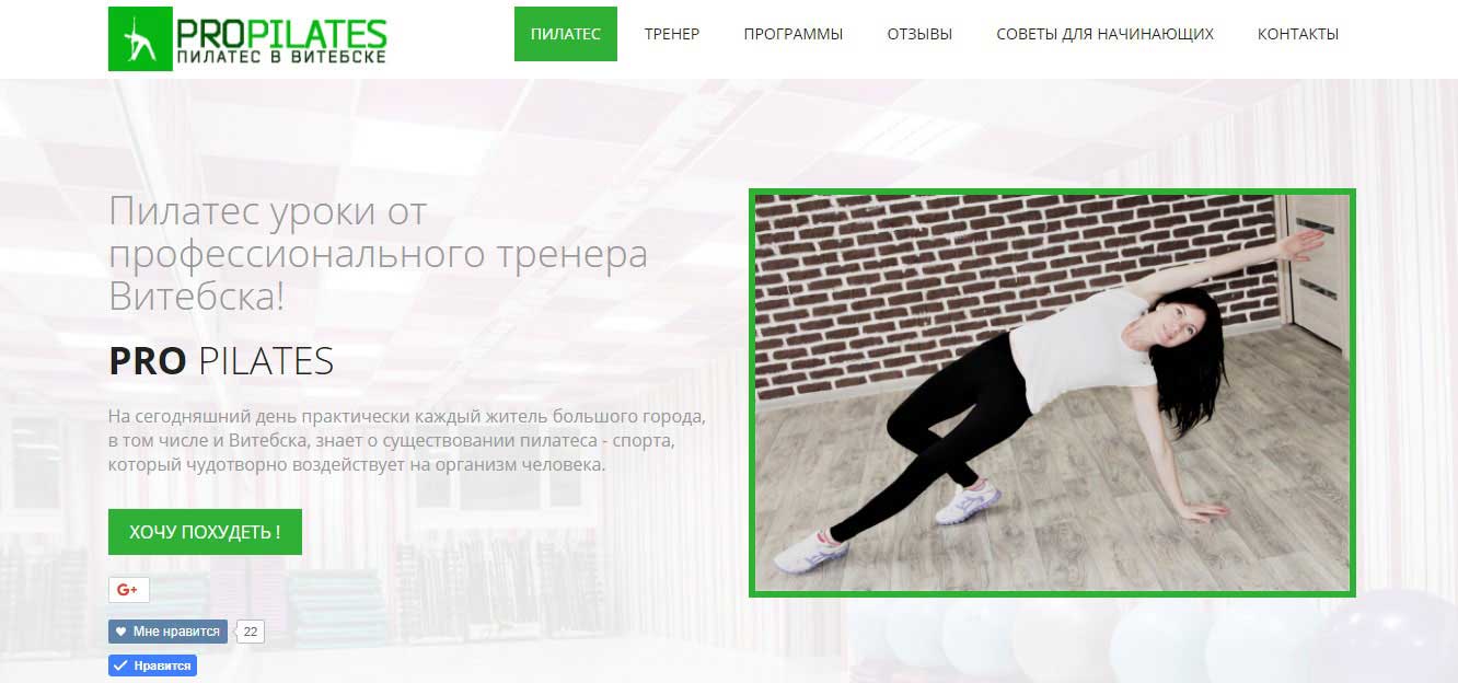 В октябре 2016 года к нам обратился фитнес тренер из города Витебск. Его интересовало seo продвижение лендинга тренировок по пилатесу, с целью увеличить позиции в поиске и привлечь новых клиентов из поиска. Сайт молодой и на момент обращения возраст составлял 2 месяца.