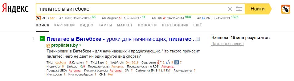Рассмотрим кейс по продвижению регионально сайта тренера по пилатесу. Конечно, чтобы попасть в ТОП-10 поиска одного уникального и полезного текста мало, seo продвижение — это сложная работа, которая включает в себя много различных задач по внутренней и внешней оптимизации, но если созданием сайта занимались профессионалы, то количество работы seo-специалиста заметно сокращается.