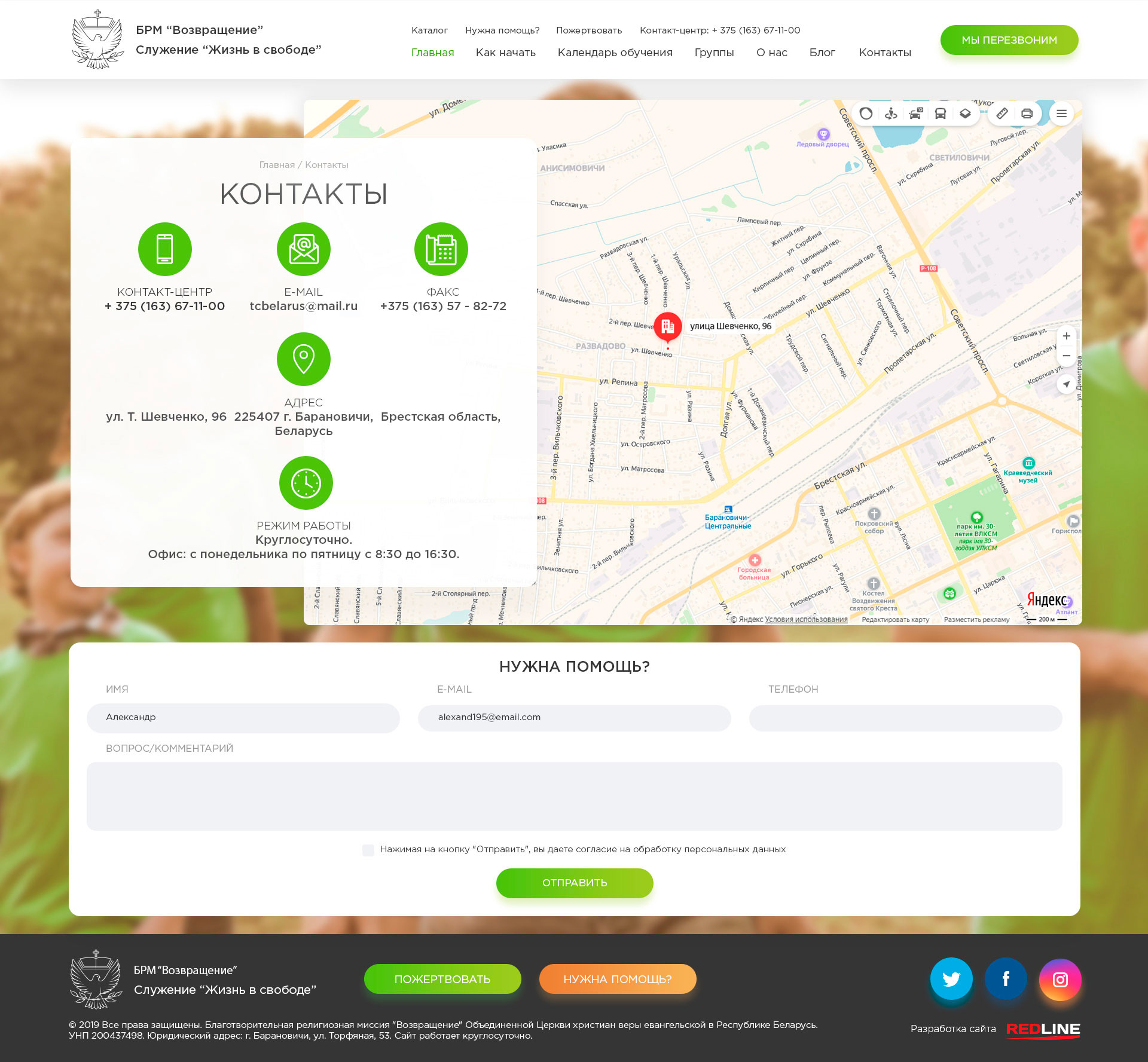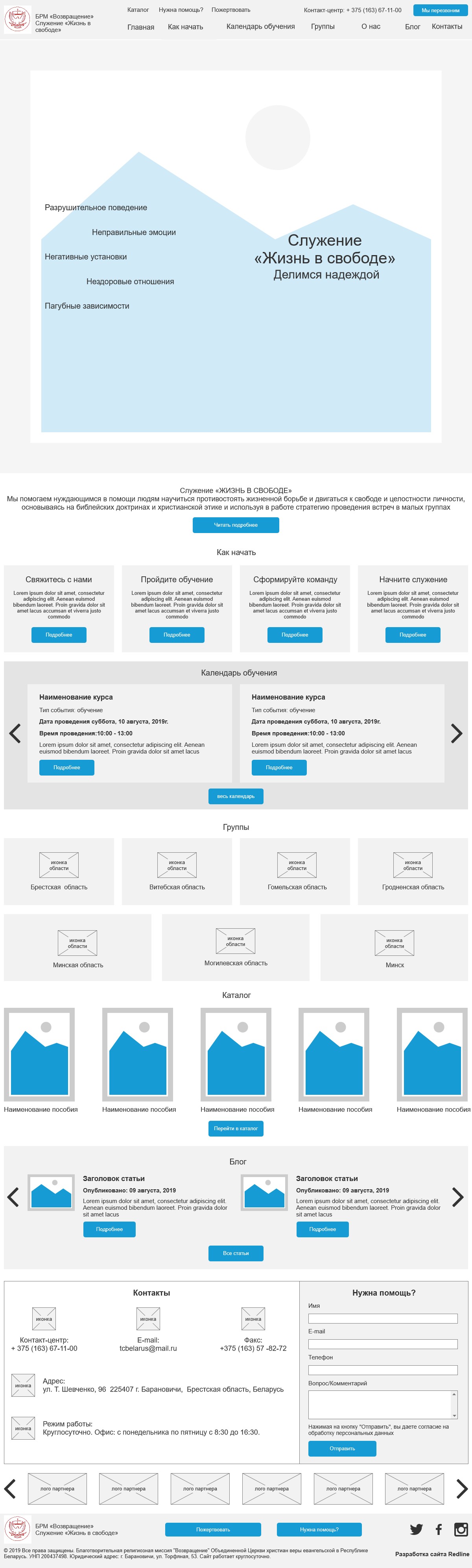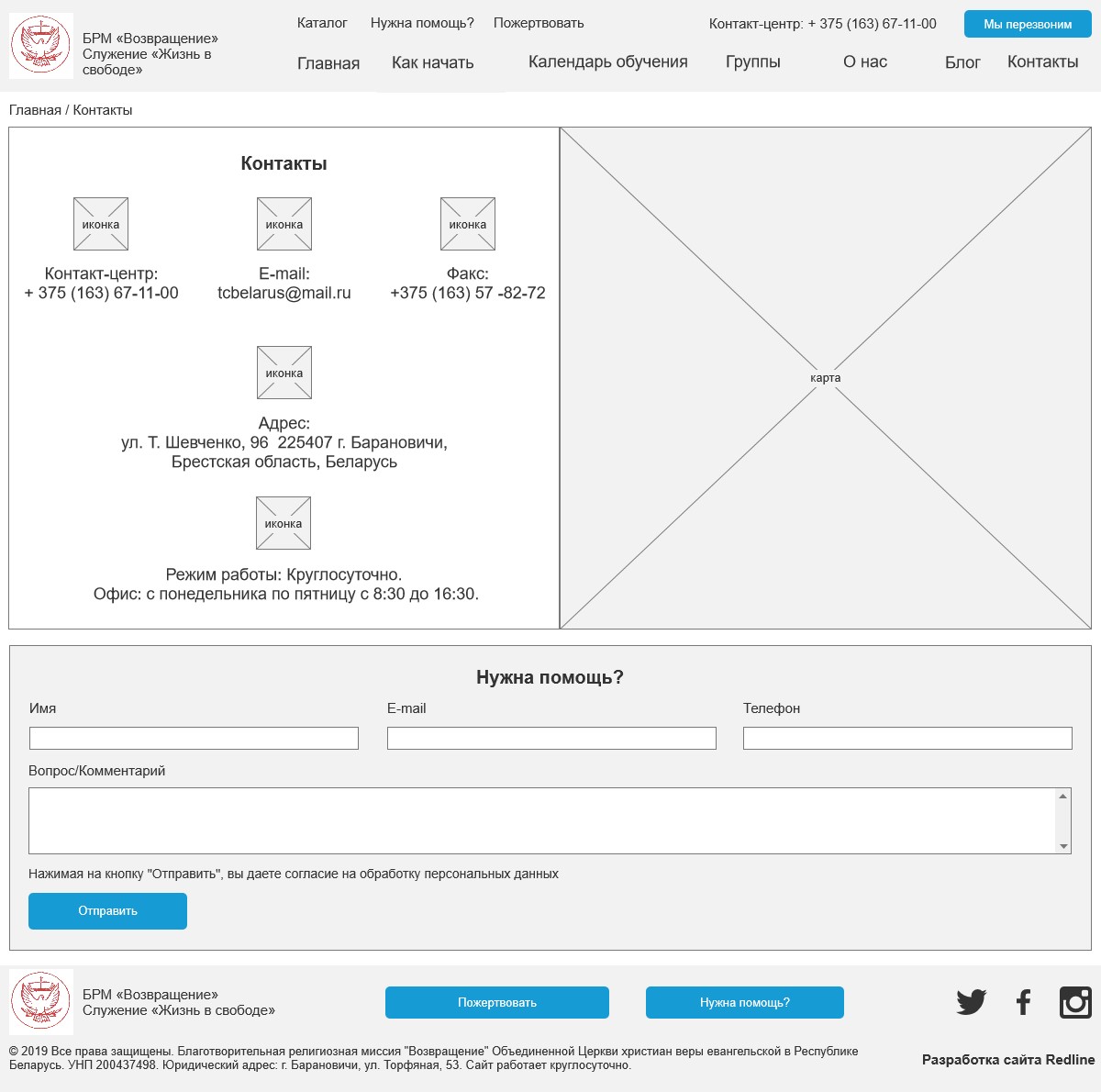 Клиент: Благотворительная религиозная миссия "Возвращение". Так как организация является некоммерческой, веб-студия REDLINE выполняла данный проект на безвозмездной основе.