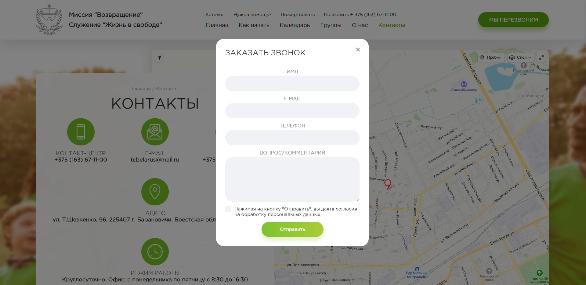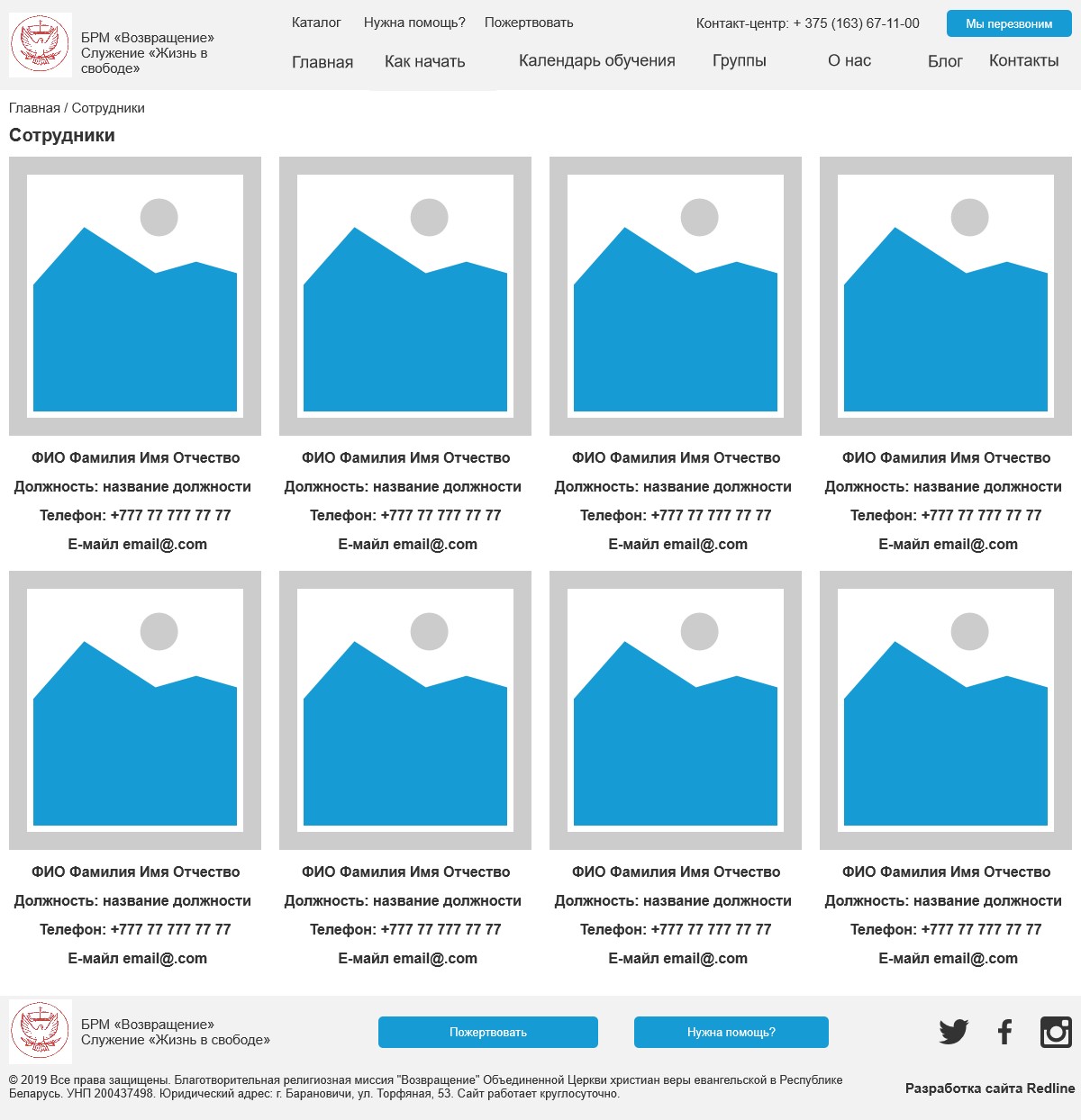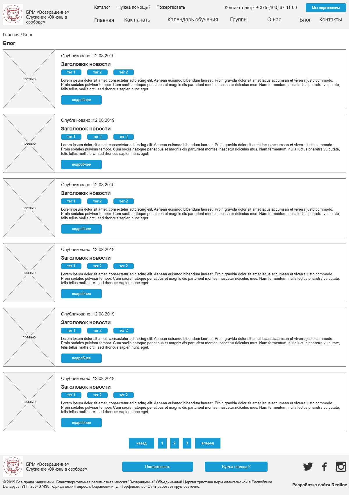 Клиент: Благотворительная религиозная миссия "Возвращение". Так как организация является некоммерческой, веб-студия REDLINE выполняла данный проект на безвозмездной основе.