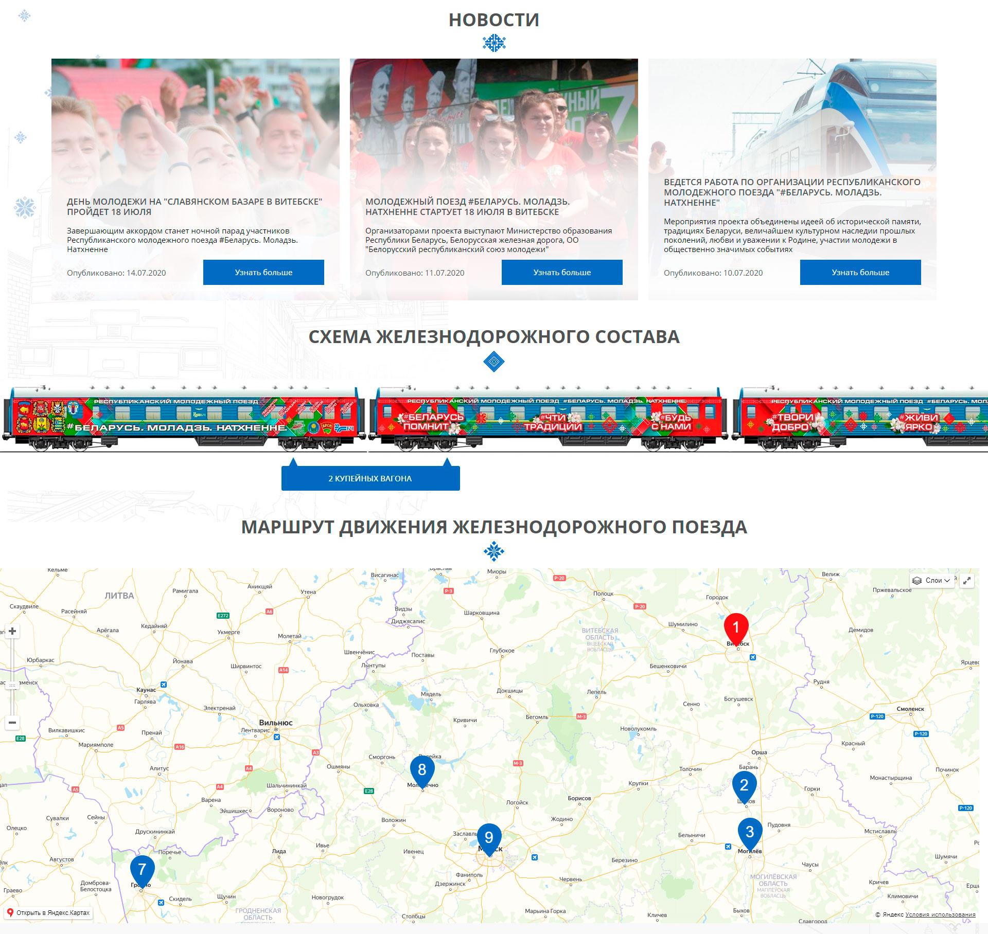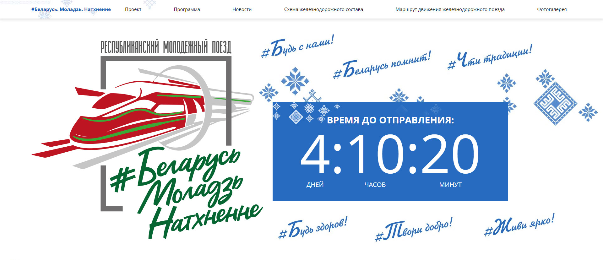 Задача: Разработать сайт-визитку для республиканского молодёжного поезда "#Беларусь. Моладзь. Натхненне" с новостями и информацией о проекте и поезде в частности.