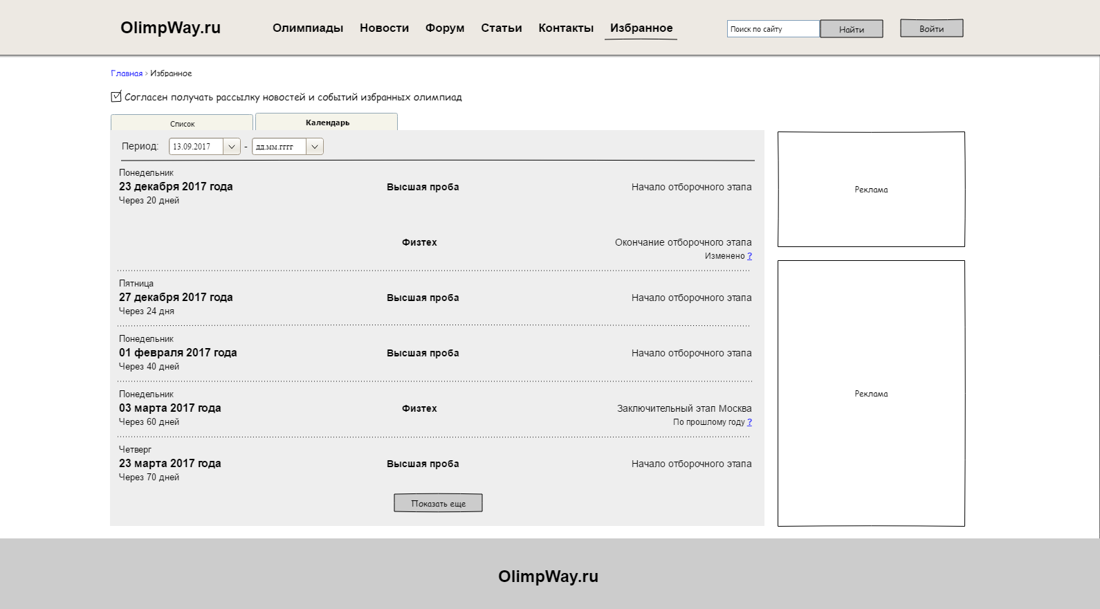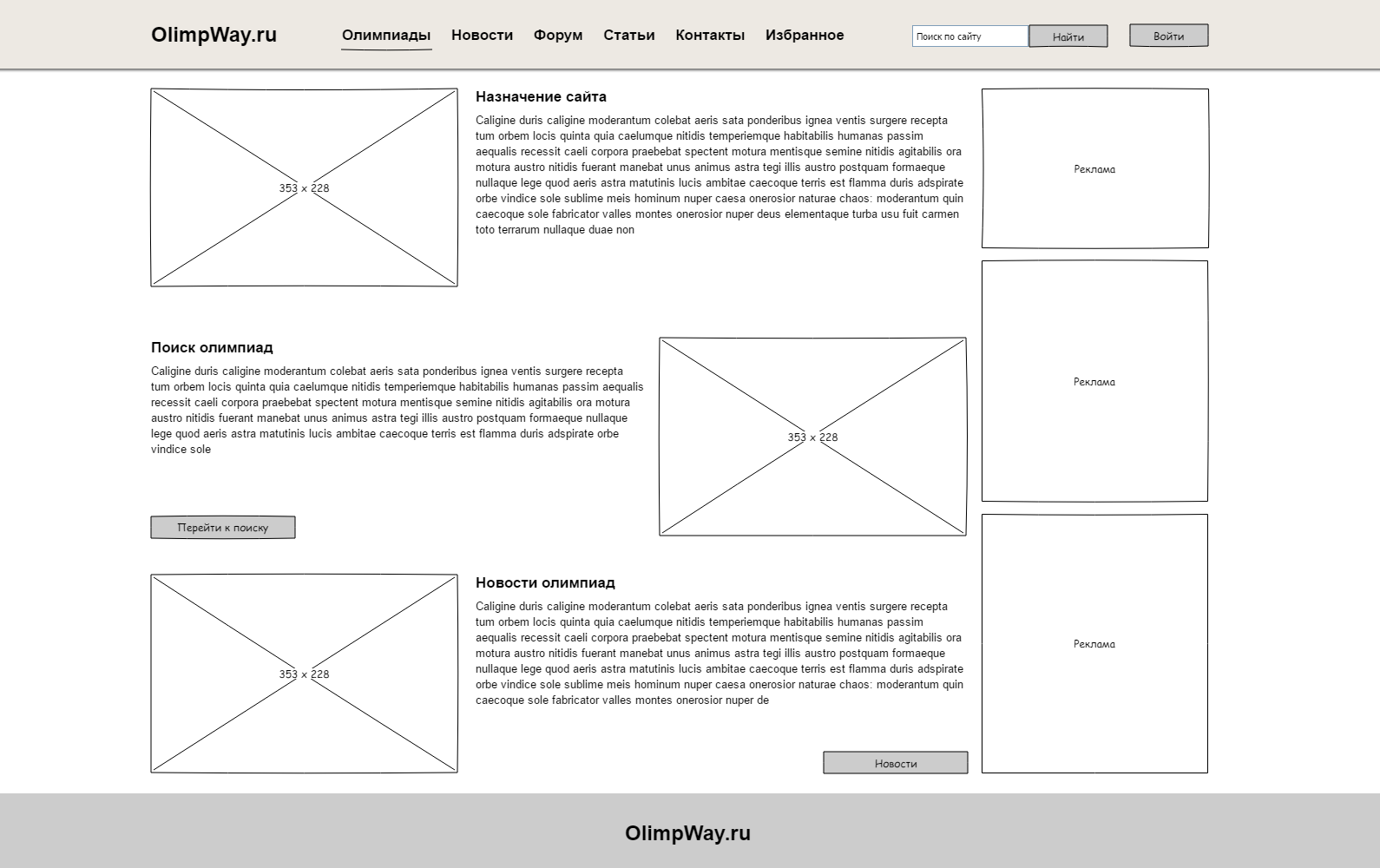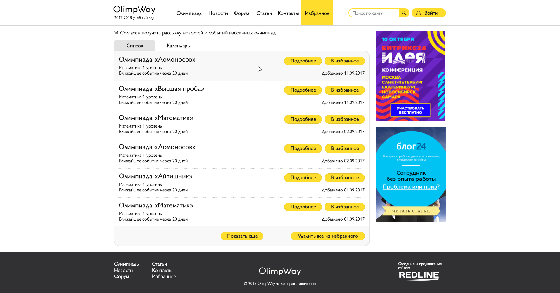 В остальных вкладках можно прочитать новости и статьи про олимпиады. От форума на сайте заказчик позже отказался. По его просьбе справа на сайте были размещены баннеры для монетизации сайта.