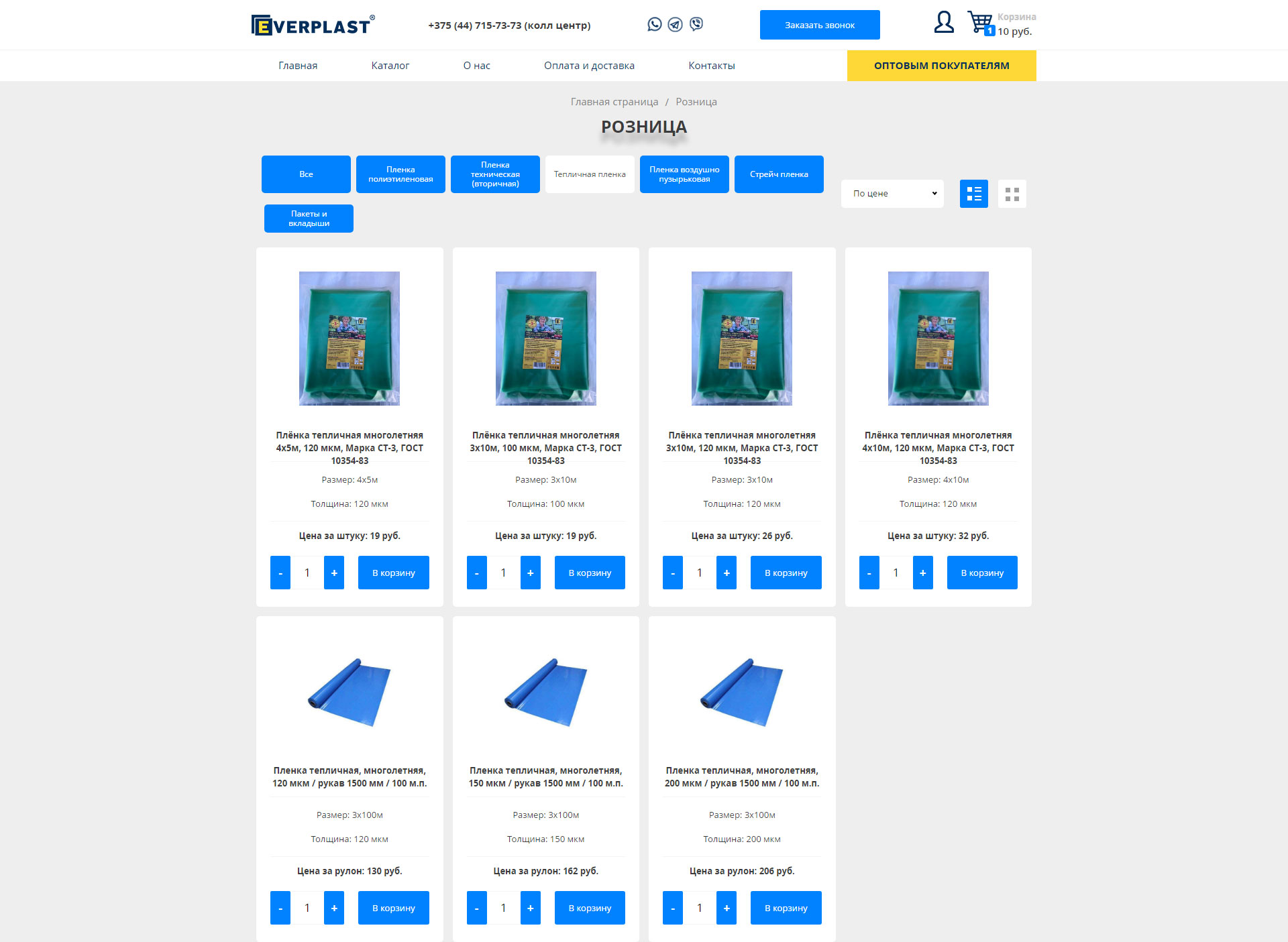 Задача: Разработать сайт компании, которая занимается производством и реализацией полимерных плёнок для розничных покупателей.