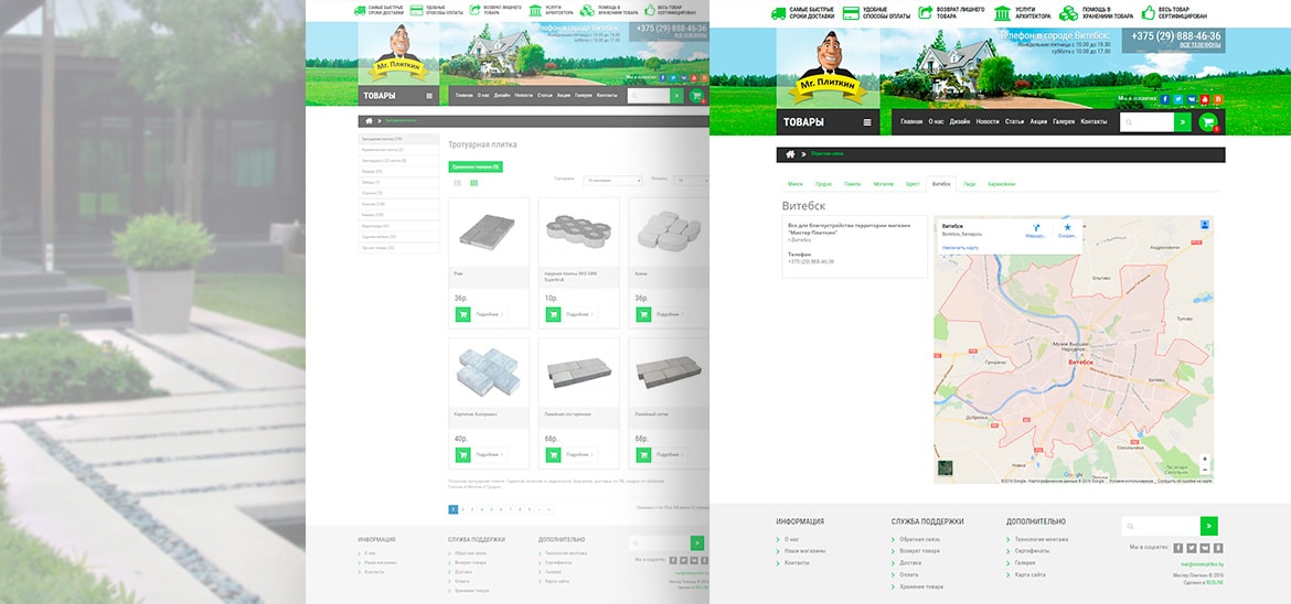 Компания «Мистер Плиткин» поставляет тротуарную плитку, бордюры, палисады, натуральный камень, искусственный газон и т.д. Магазины компании расположены в крупнейших городах Беларуси: Минске, Гродно, Бресте, Могилёве, Барановичах, Лиде.