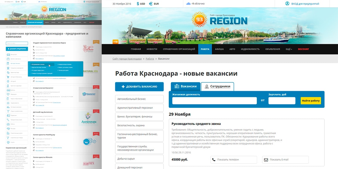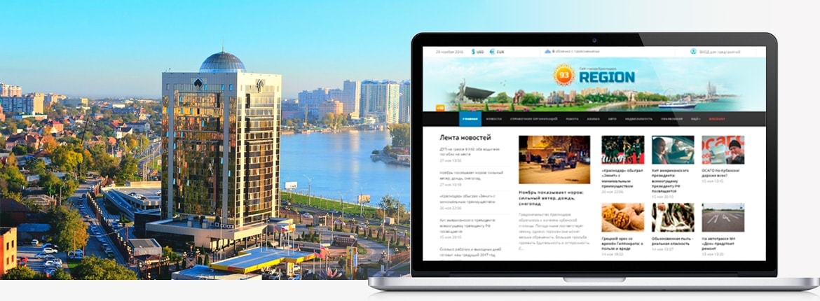 Сайт Краснодара содержит информацию о городе: каталог предприятий и учреждений, новости, погода, вакансии, афиша, объявление и многое другое.