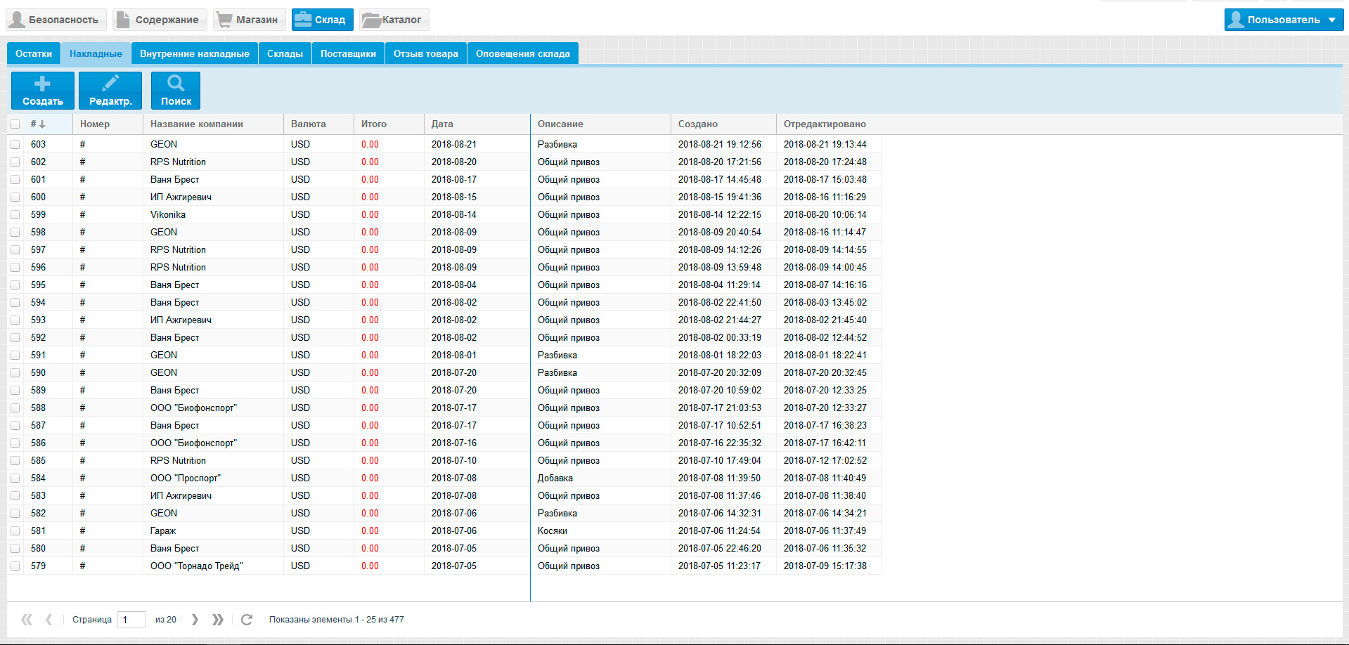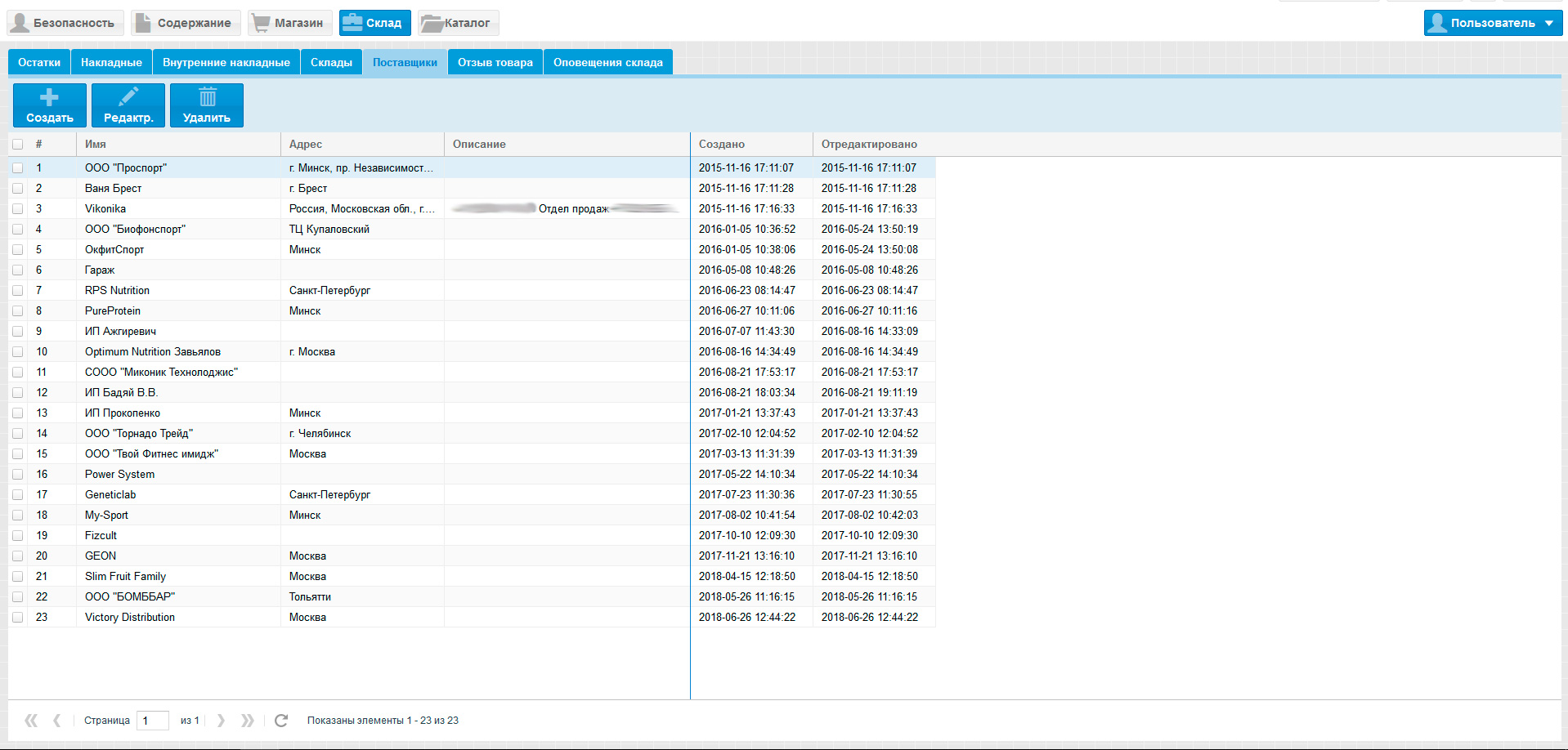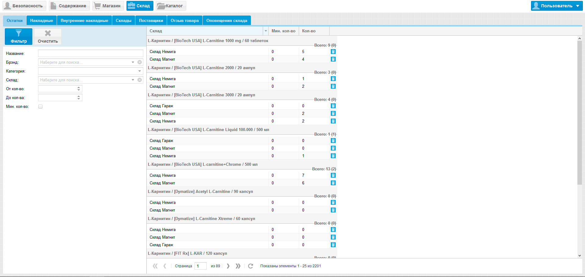 Стоит отметить, что учёт всех товаров на складах ведётся непосредственно в административной панели сайта.