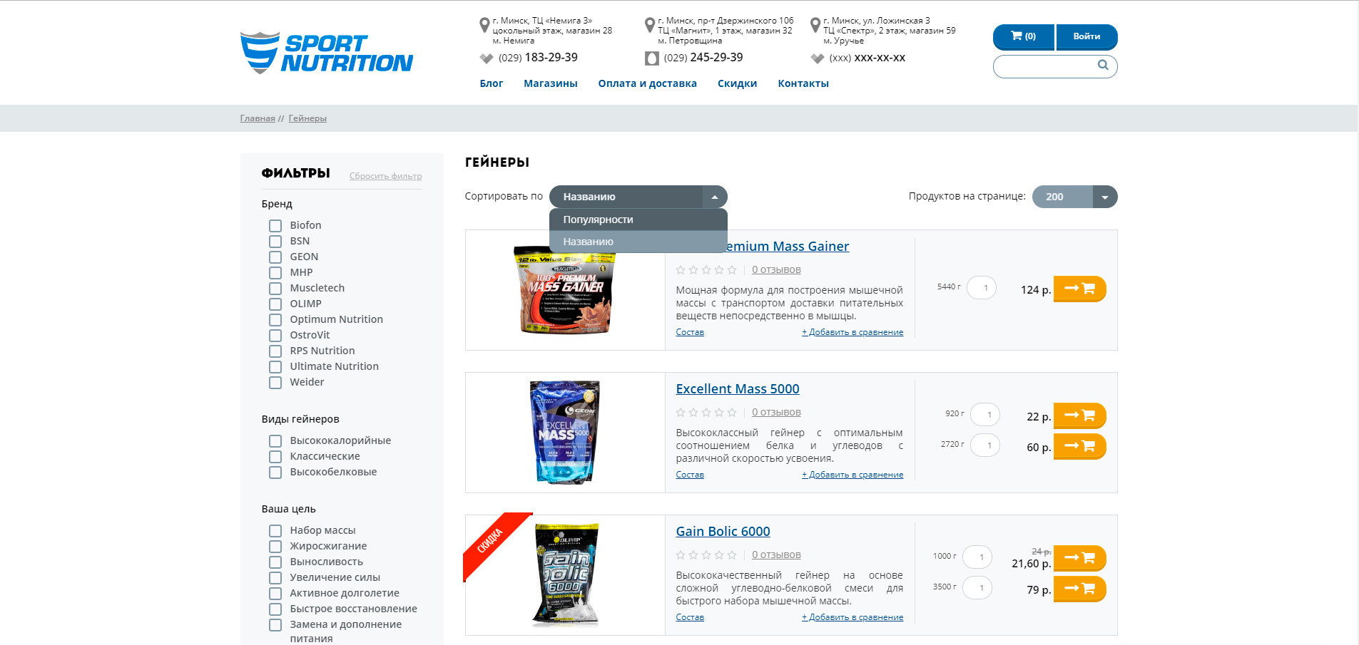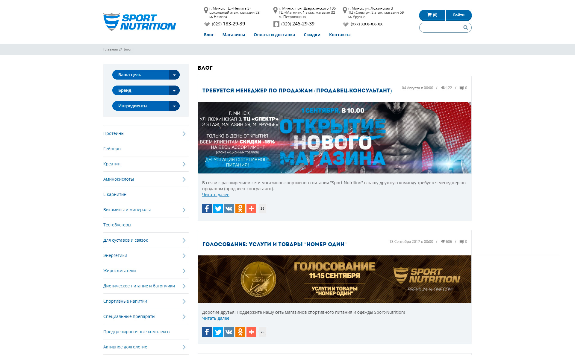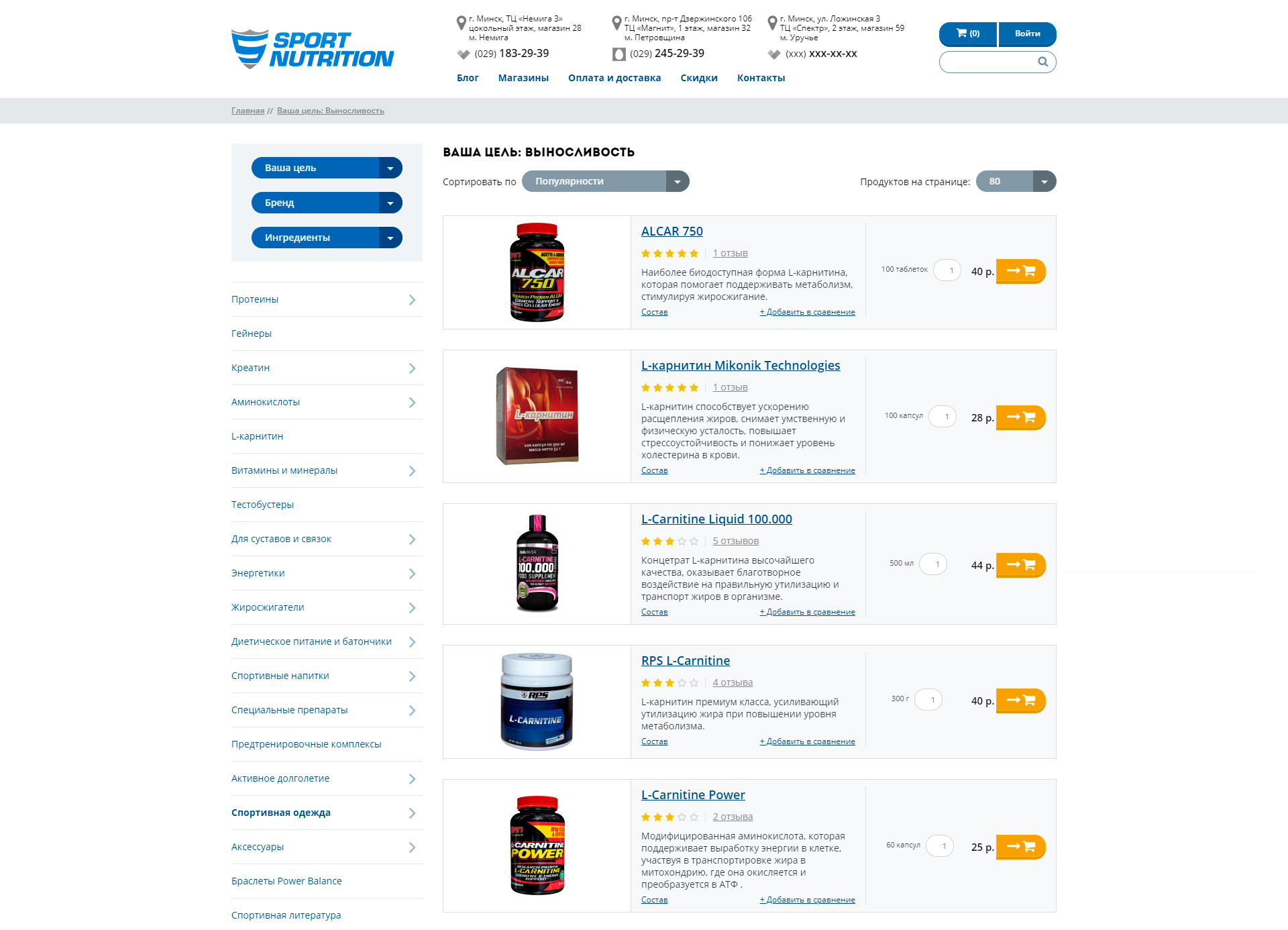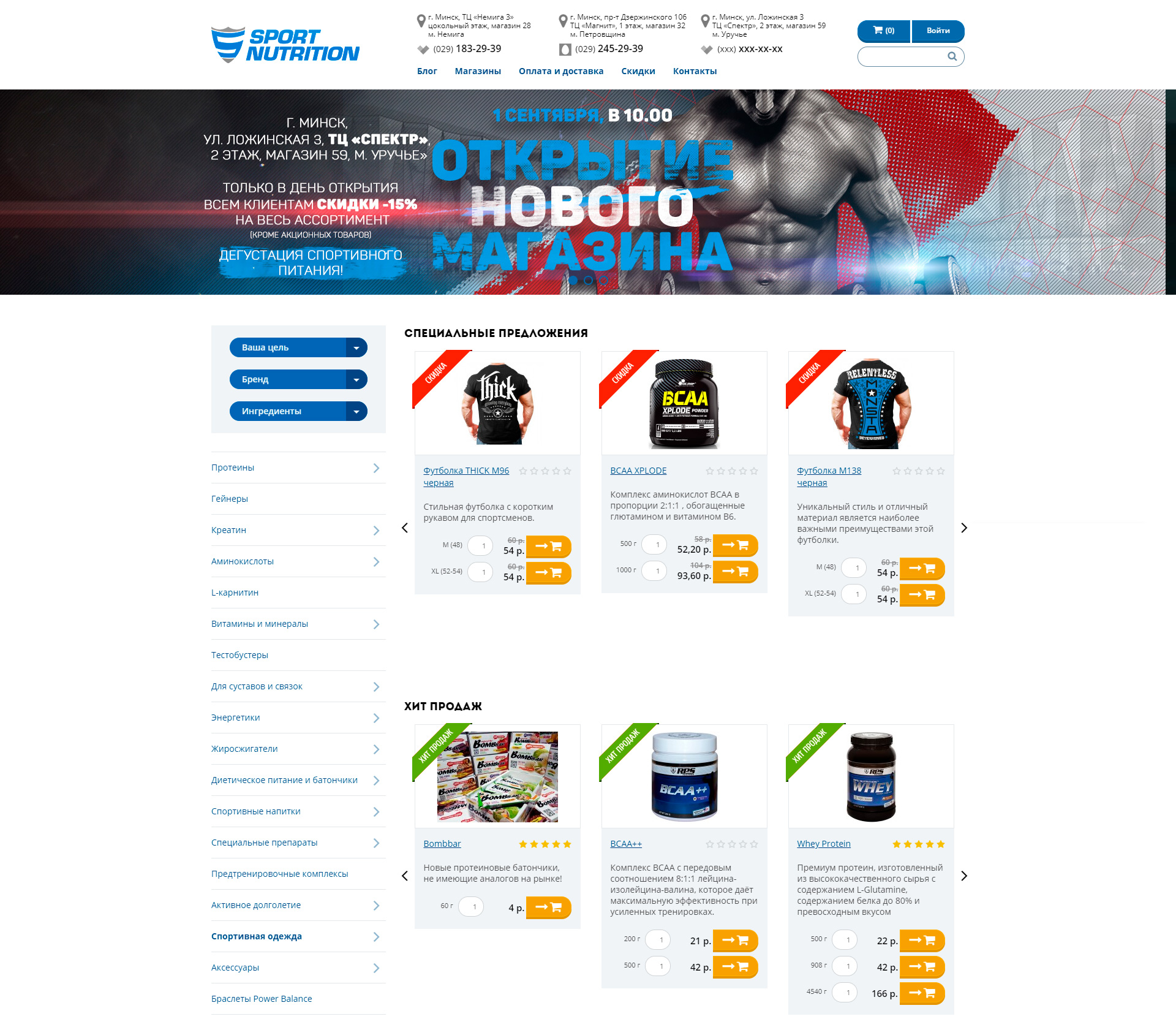 Клиент: Sport-nutrition – это популярный магазин спортивного питания, одежды и аксессуаров в Минске.