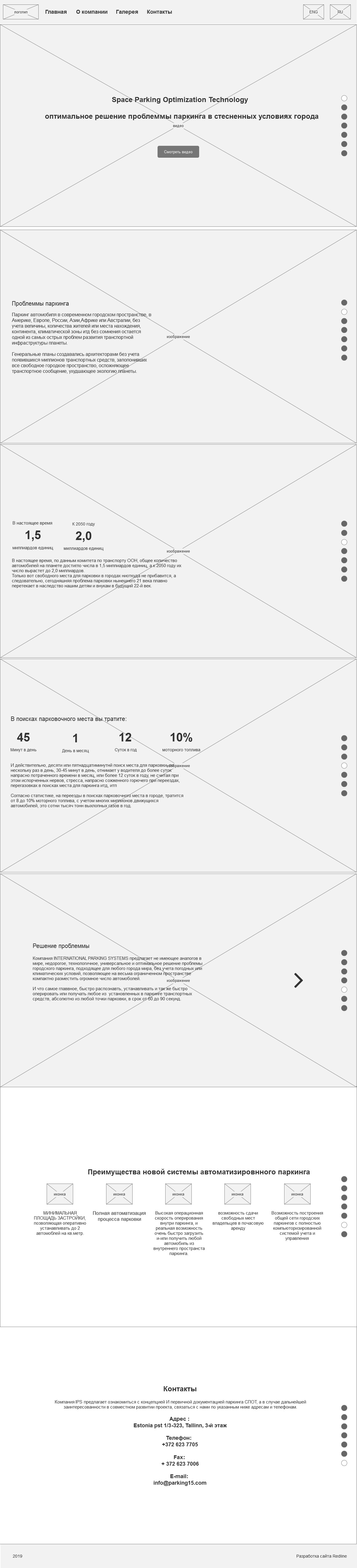 Задача: Разработать визитку для компании INTERNATIONAL PARKING SYSTEMS, которая предлагает решить проблему парковок в городах при помощи запатентованной автоматизированной системы SPACE PARKING OPTIMIZATION TECHNOLOGY.