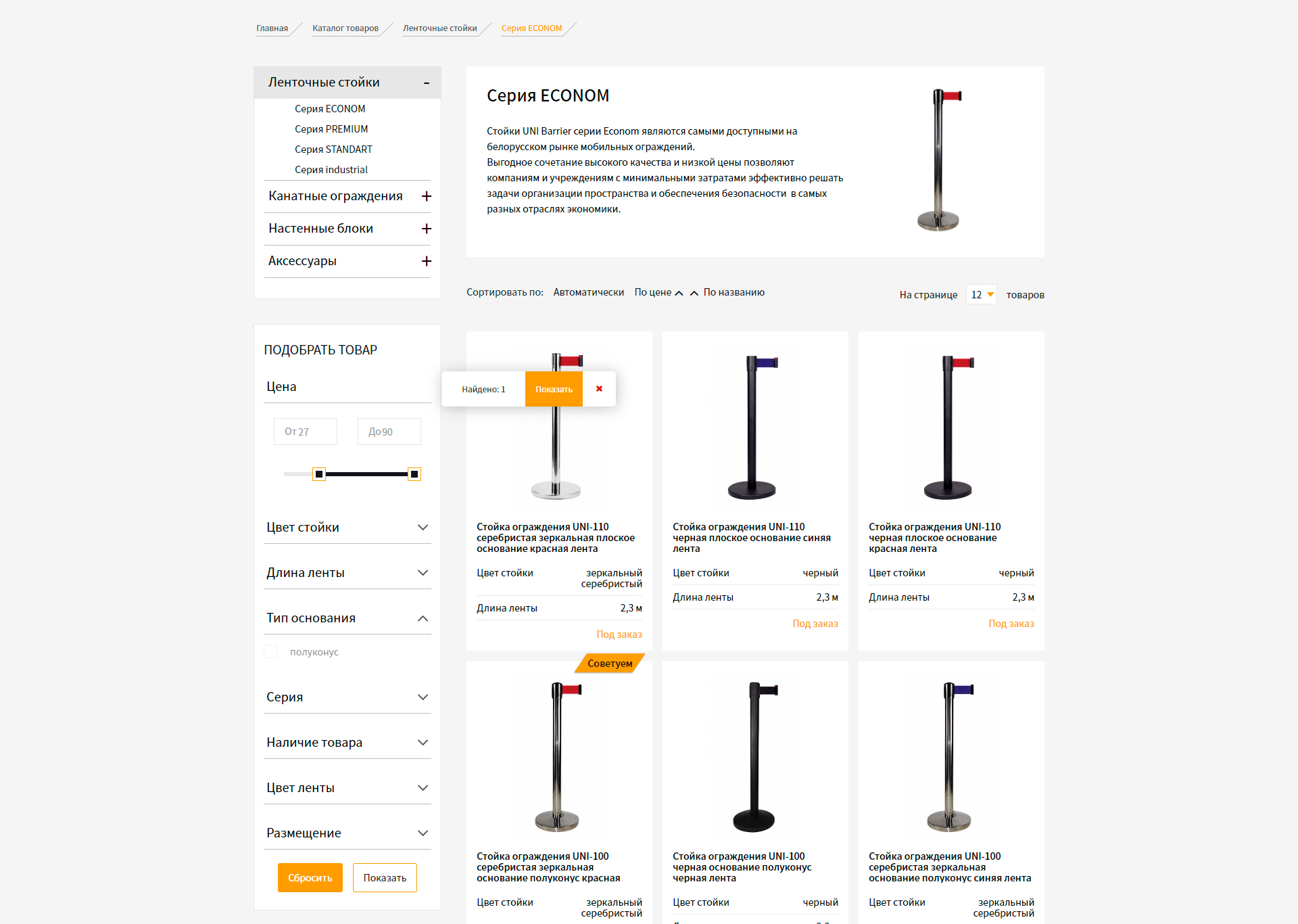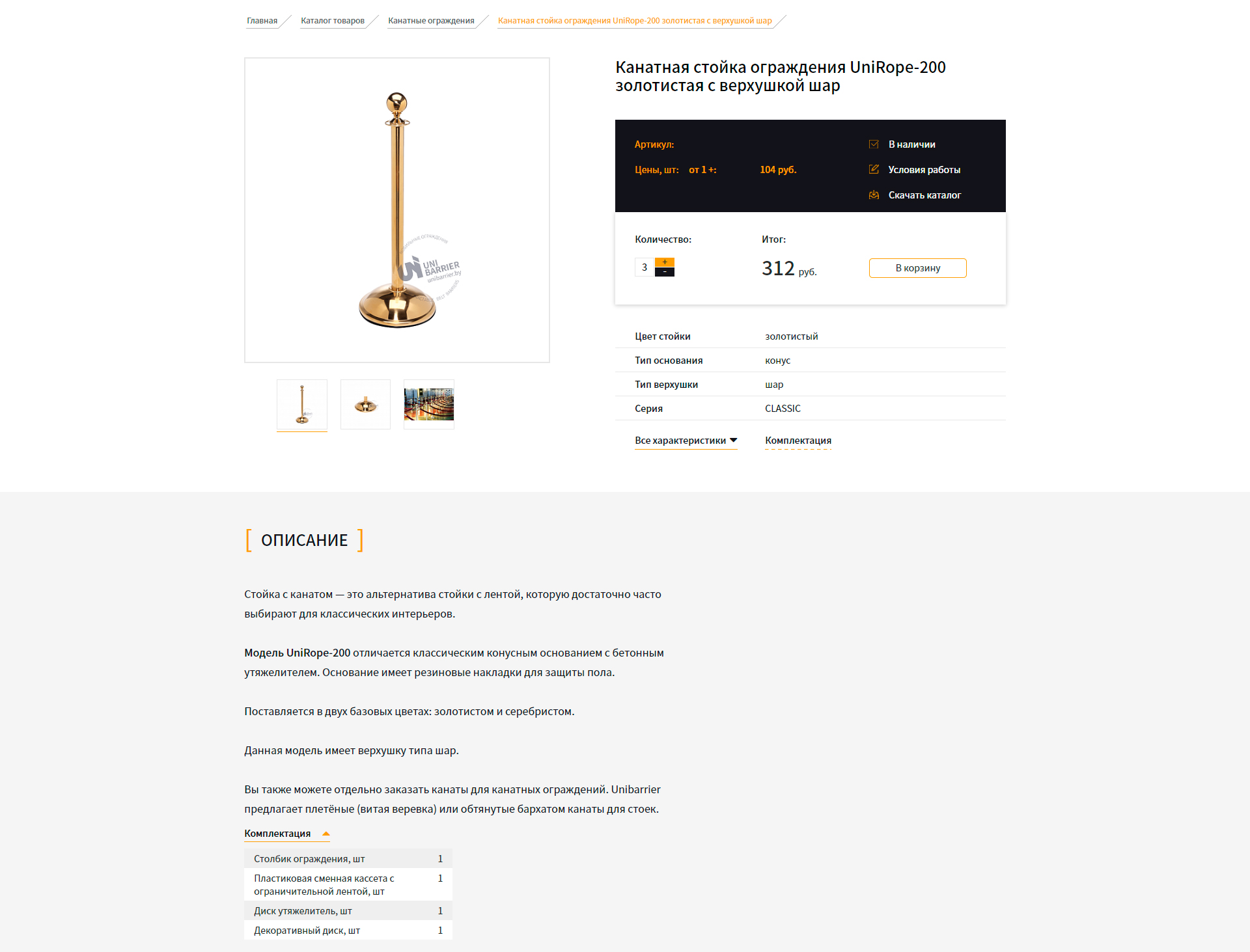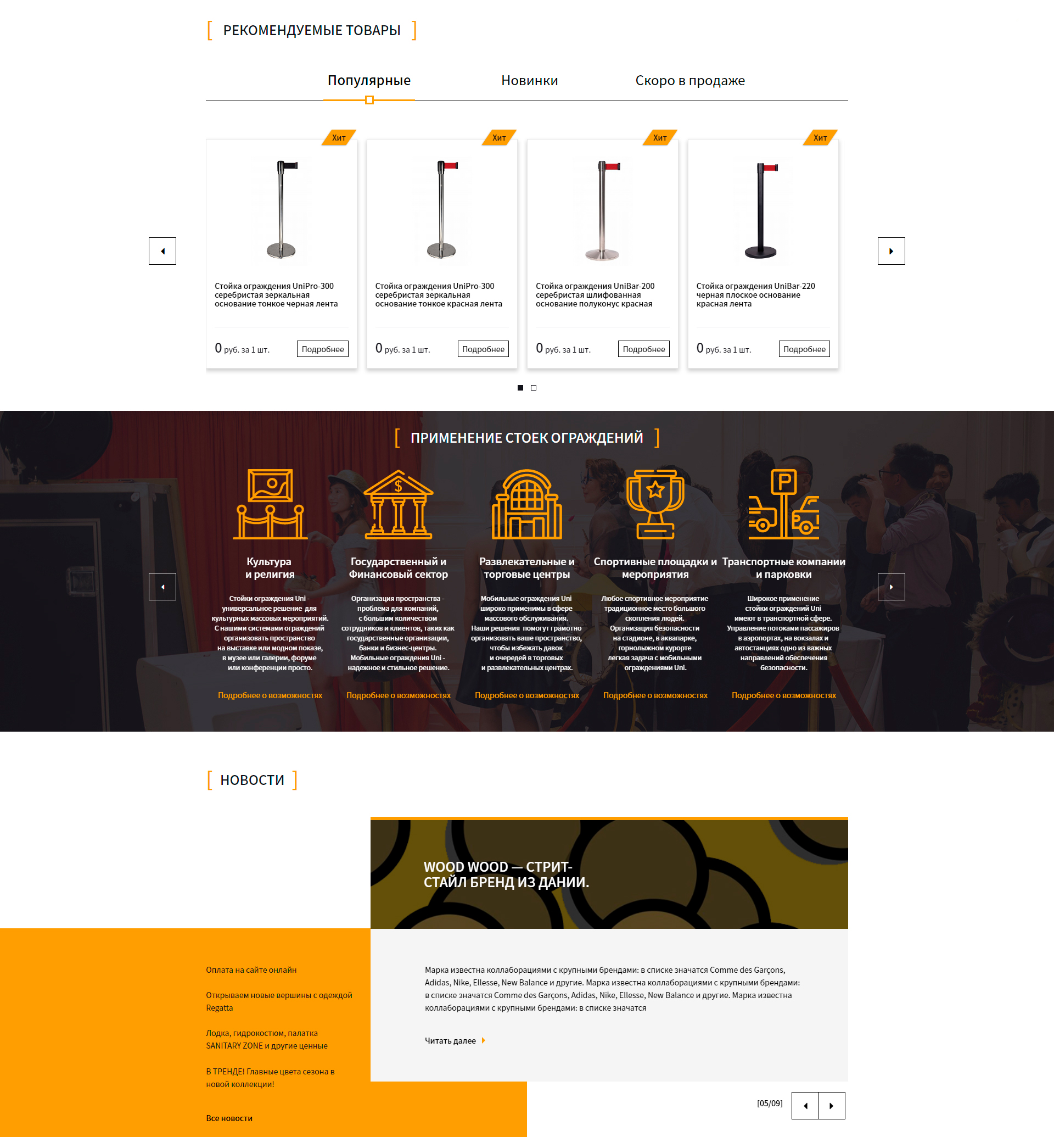 Задача: Разработать интернет-магазин мобильных стоек ограждений и комплектующих к ним с использованием шаблонизатора.