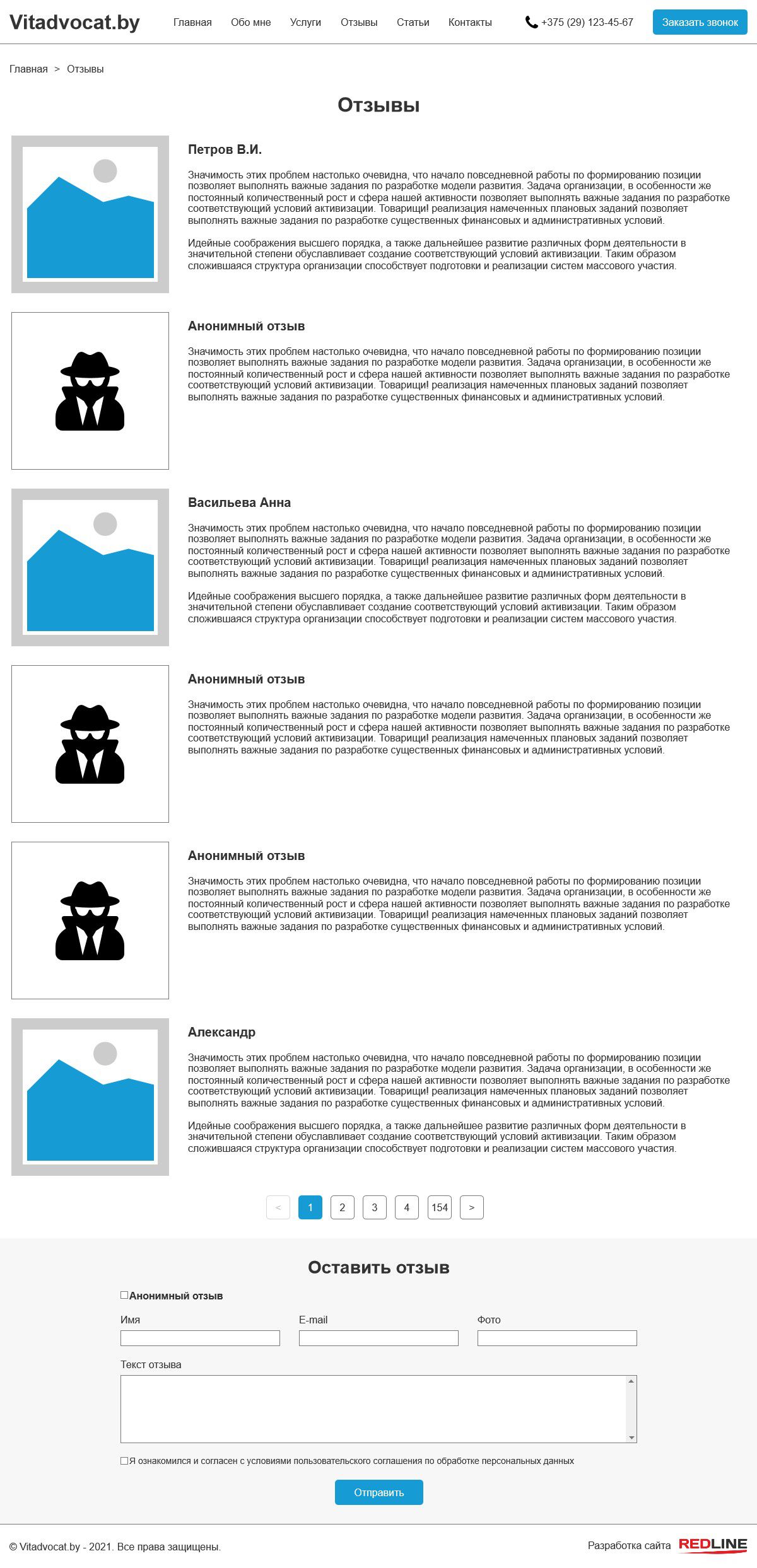 Страница отзывов: