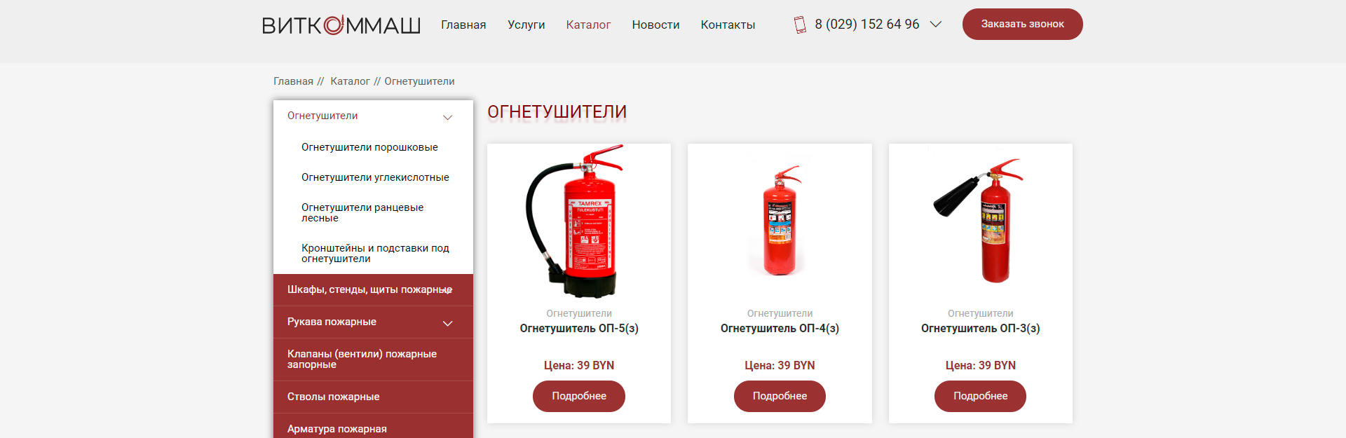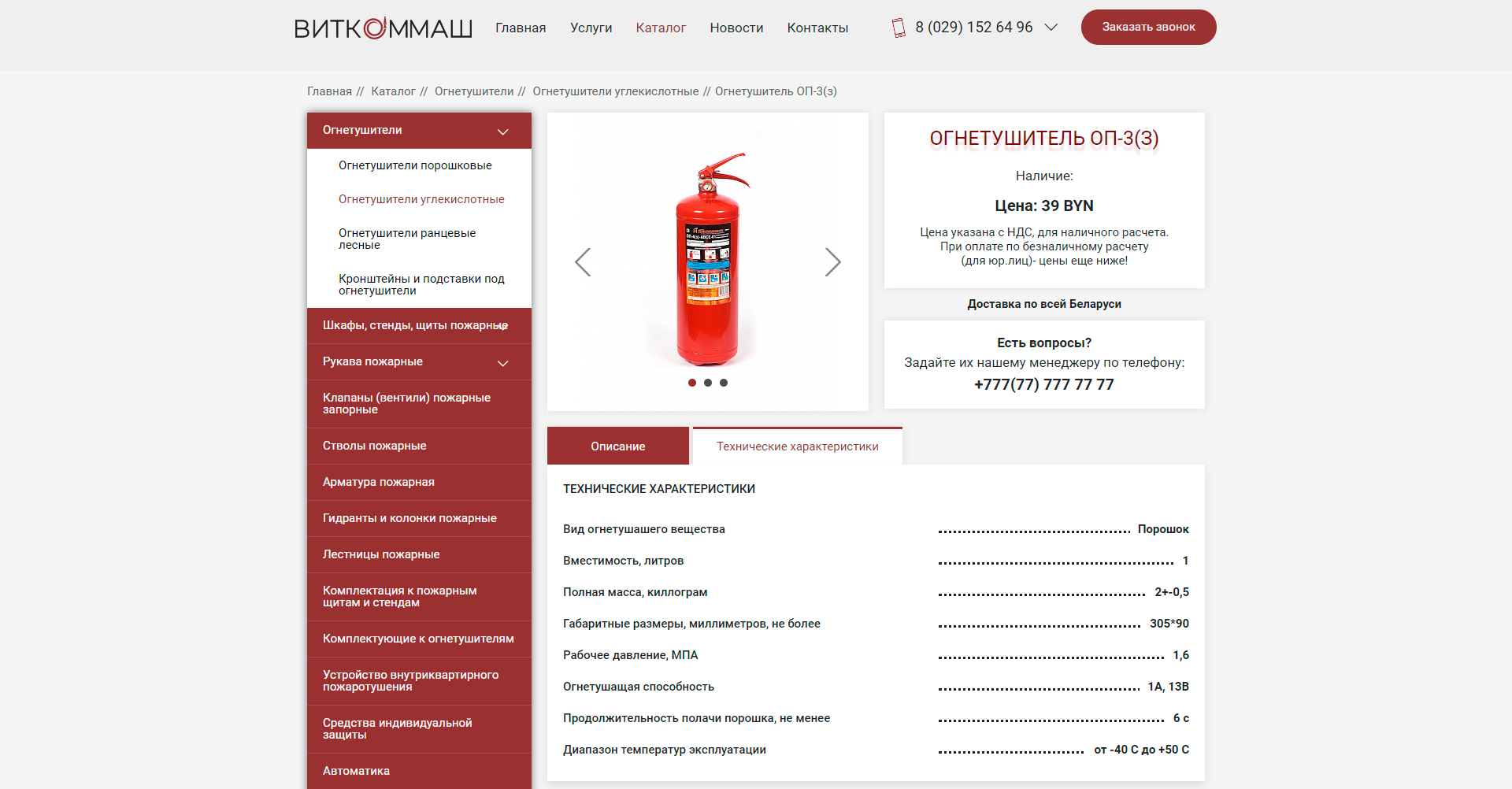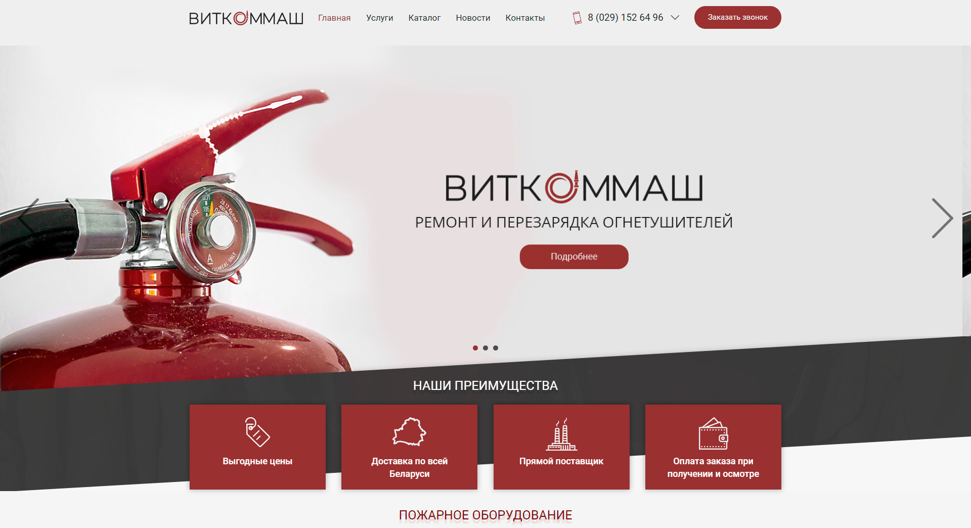 Задача: Нарисовать новый логотип и дизайн для будущего сайта. Разработать корпоративный сайт с каталогом продукции для компании, которая занимается ремонтом и перезарядкой огнетушителей и продажей противопожарного оборудования.